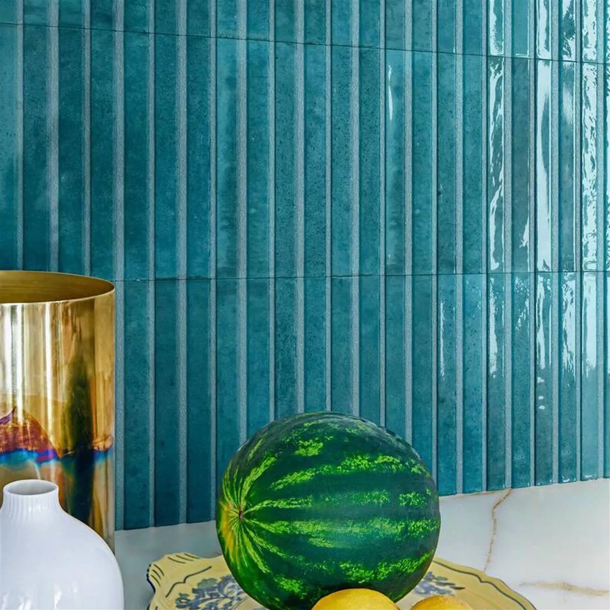 Upptäck mångsidigheten hos Artemis väggkakel i porslin och stengods. Perfekt för olika inomhusutrymmen som kök, badrum, tvättstuga, förråd, hallar och vardagsrum, ger denna platta ditt utrymme en fräsch och modern estetik. Den glaserade, glansiga havsblå färgen skapar en unik 3D-effekt.