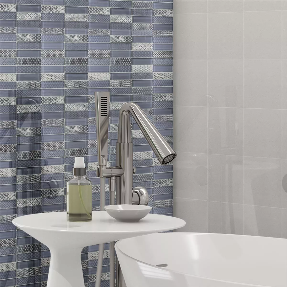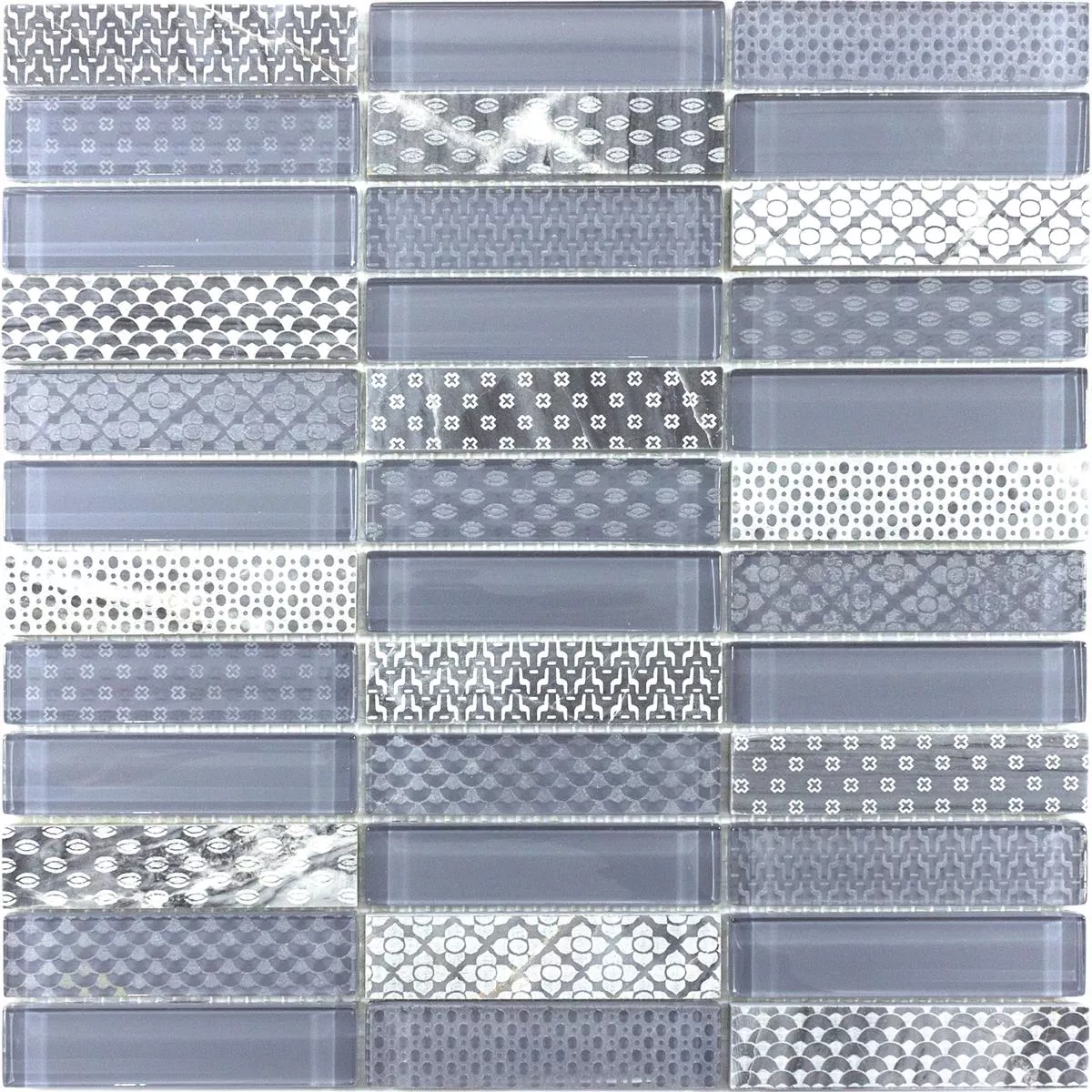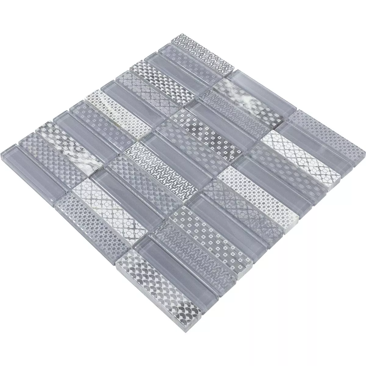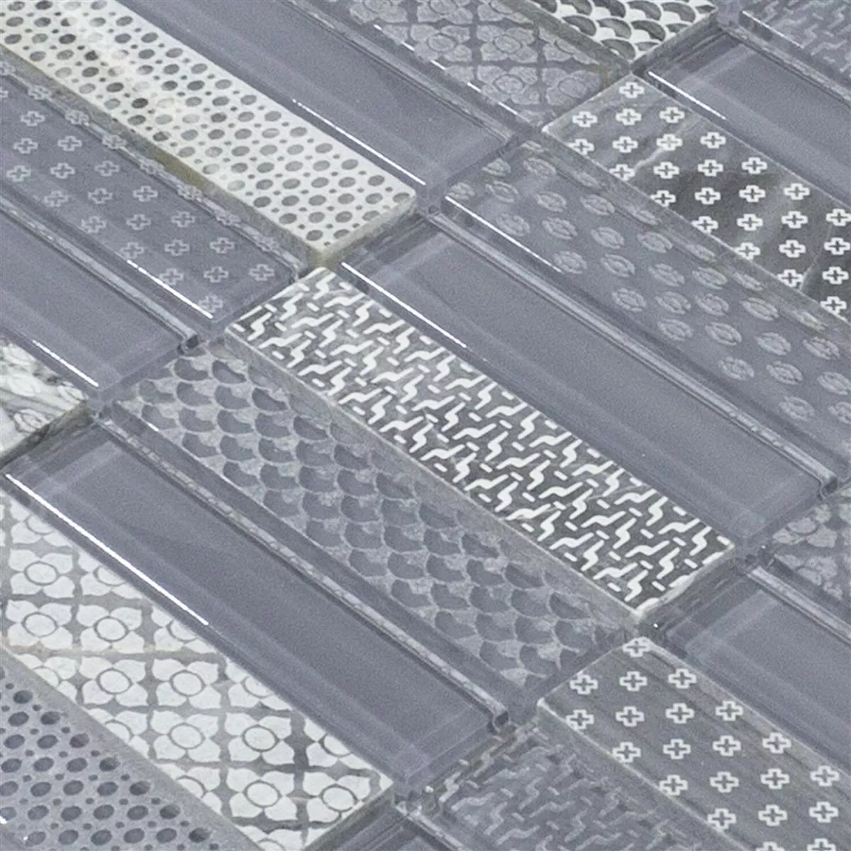 Glas natursten mosaikplattor Celestiana Ornament Brick Mix - estetik i grått.