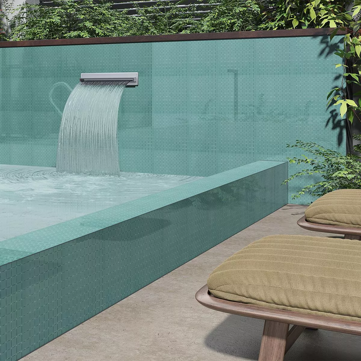Venetia Pool Mosaic i färgen grön-blå är en högkvalitativ mosaikplatta som levereras på en matta på 0,10 m². Den är idealisk för att lägga på väggar och golv och erbjuder ett elegant utseende tack vare sitt kvadratiska format med en stenstorlek på 25 x 25 mm och en kakelmatta på 31,6 x 31,6 cm. Kakelplattans tjocklek är 4 mm.