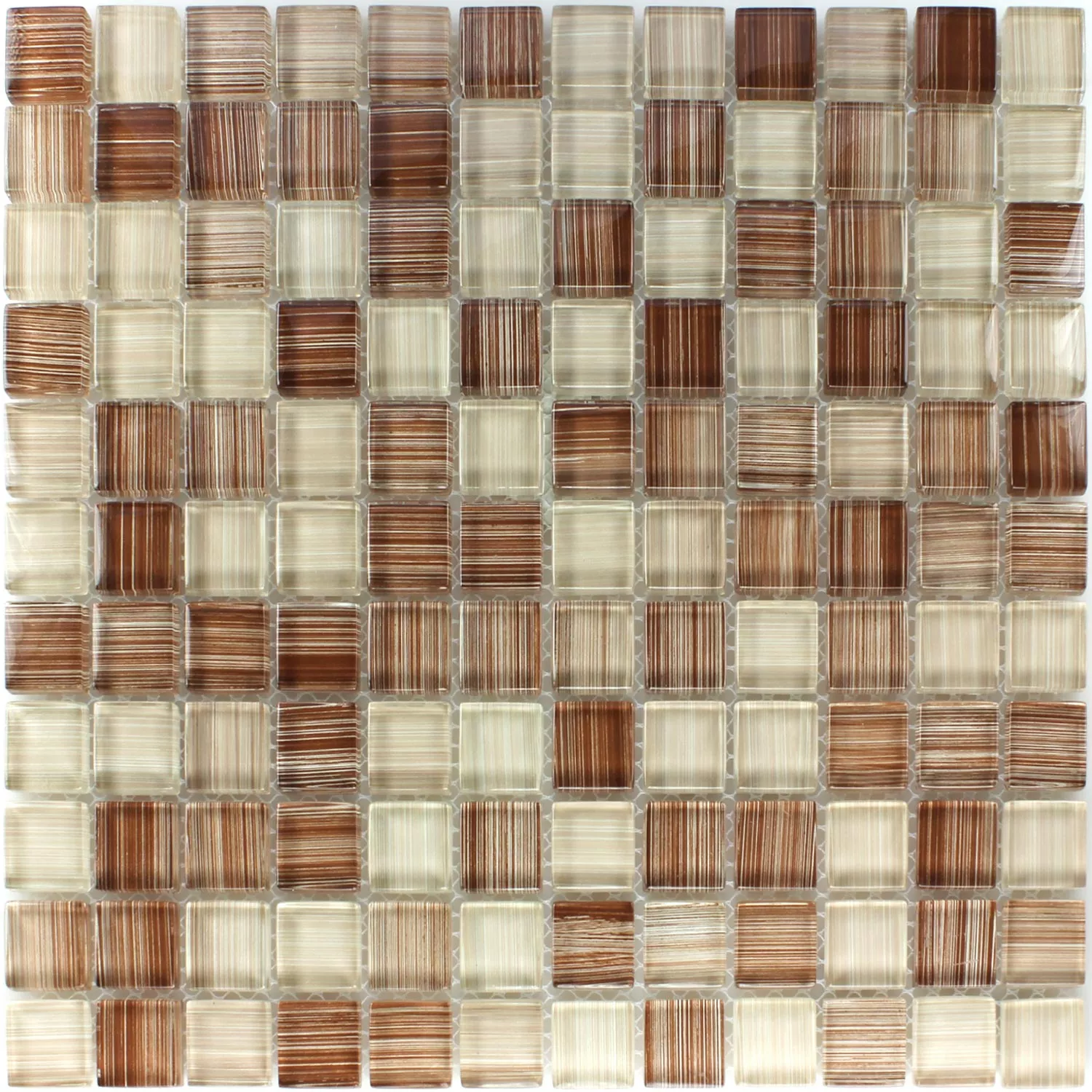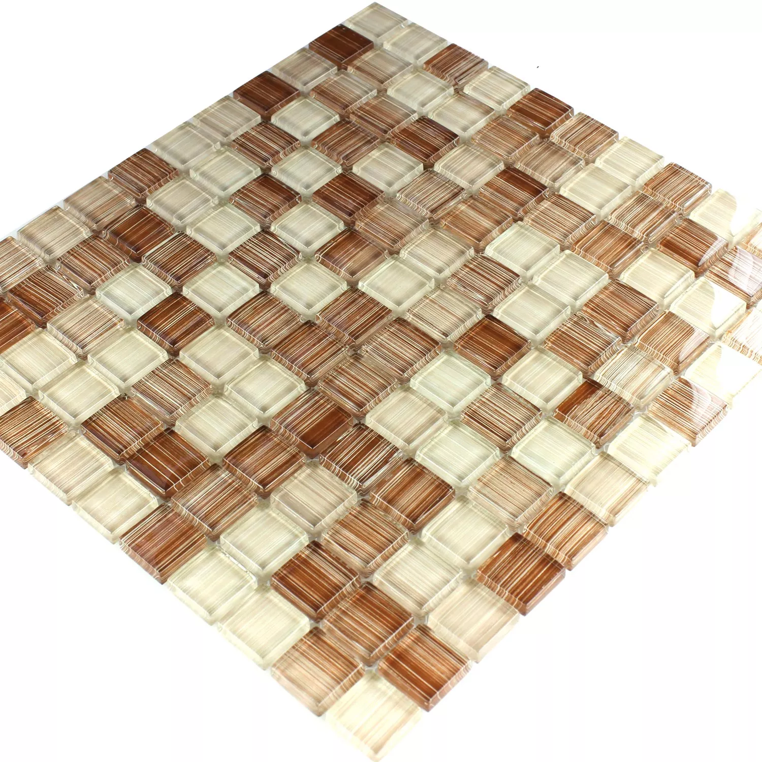 Glasmosaik Plattor Lafayette Brun Beige Randig 8mm