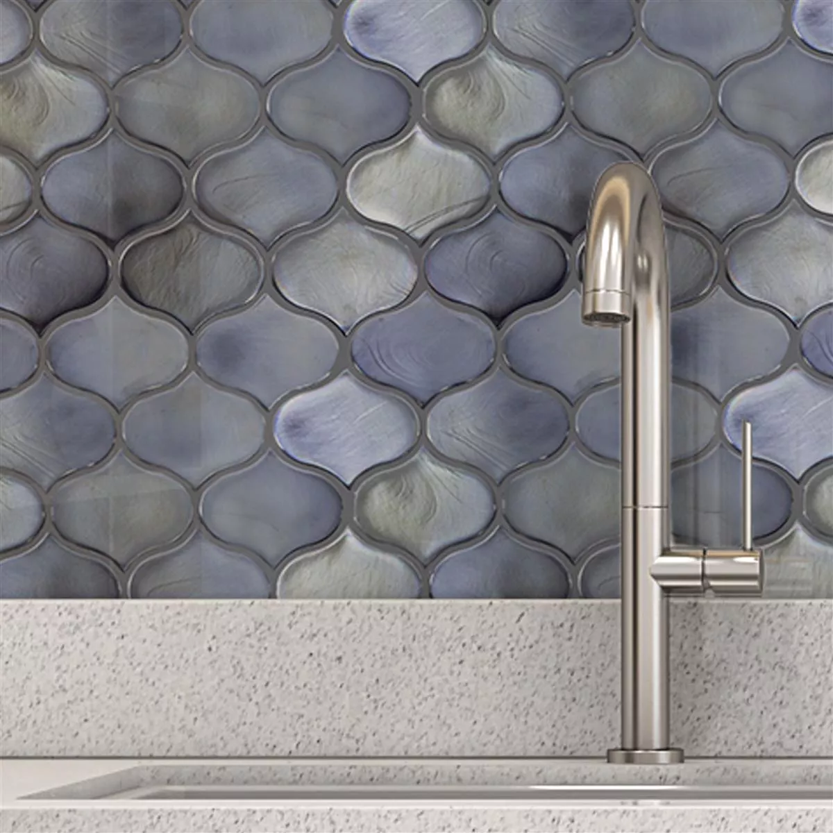 Andalucia Arabesque Black glasmosaikplattor är ett elegant och stilfullt val för att designa dina rum. Med en svart färg och en blank yta som har en pärlemoreffekt kommer dessa plattor att ge ditt rum en unik atmosfär.