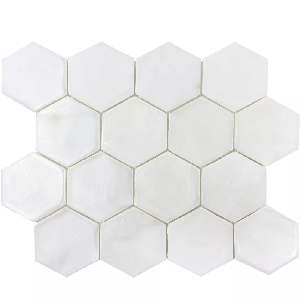 Glasmosaik Plattor Andalucia Hexagon Vit