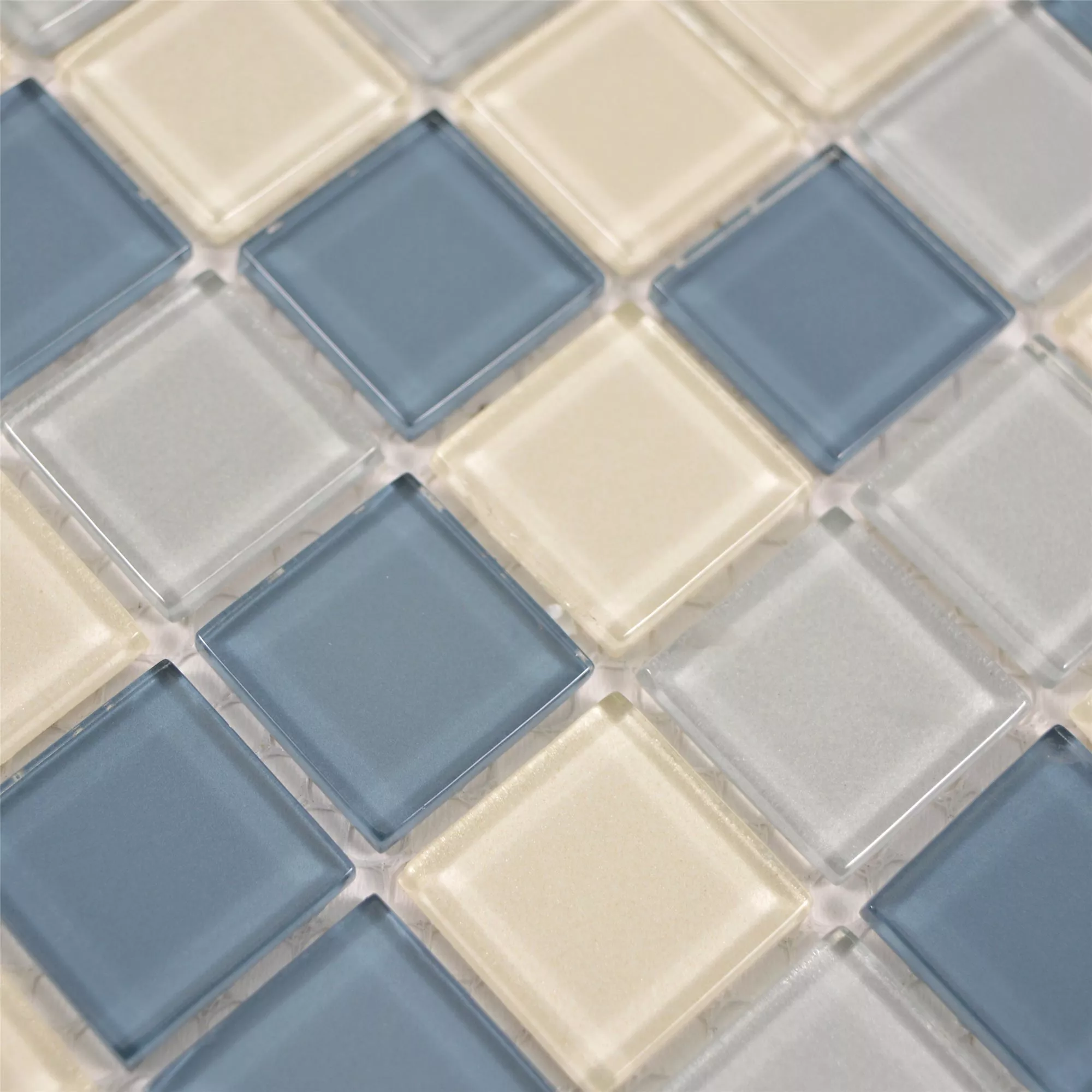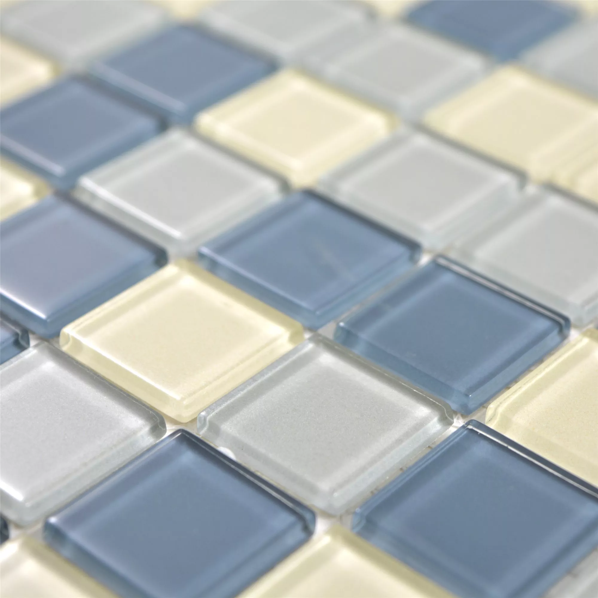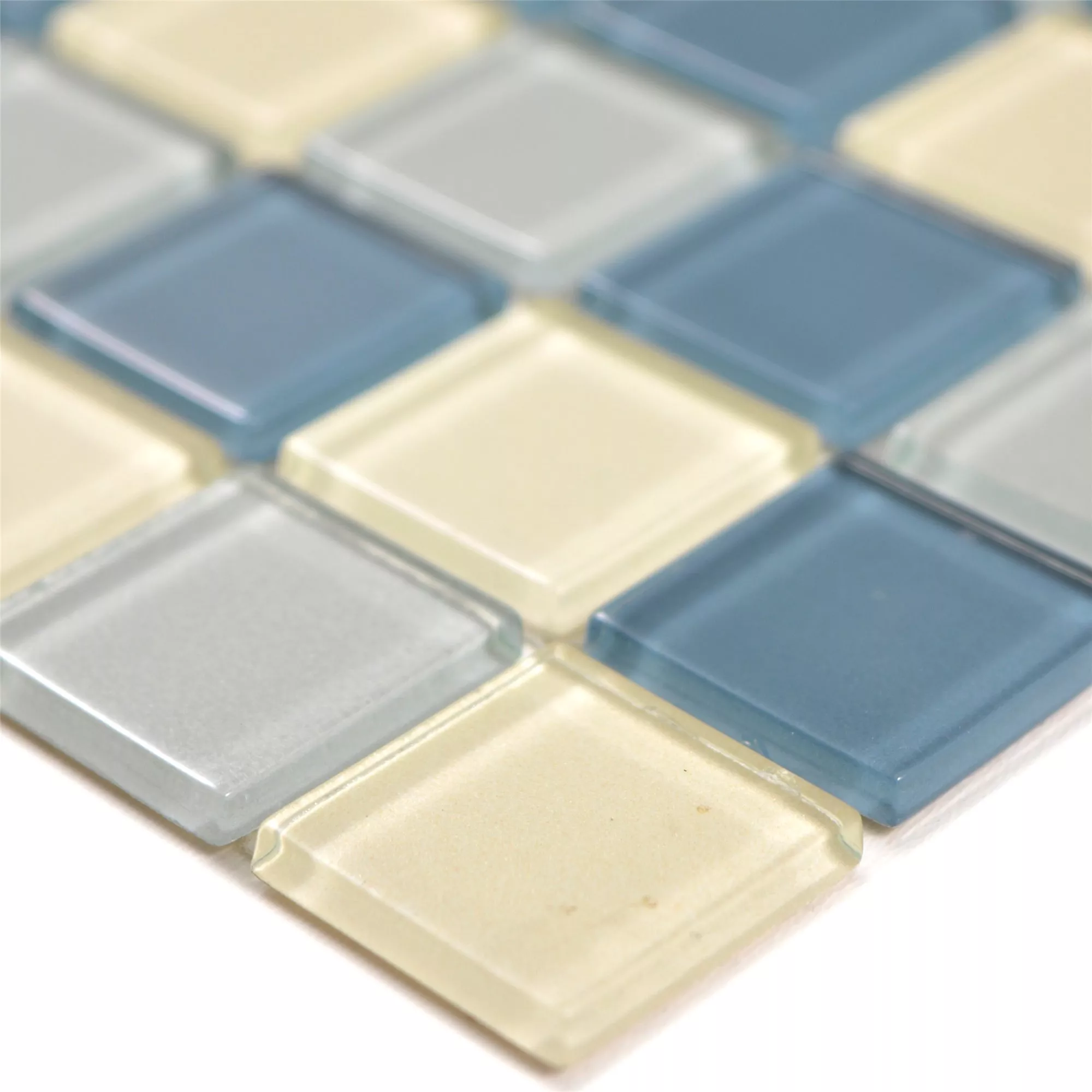 Bommels mosaikplattor i blått, silver och vitt är det perfekta valet för elegant och modern inredning. Dessa plattor är gjorda av glas och erbjuder en glansig finish som ger ditt rum en lyxig glans.