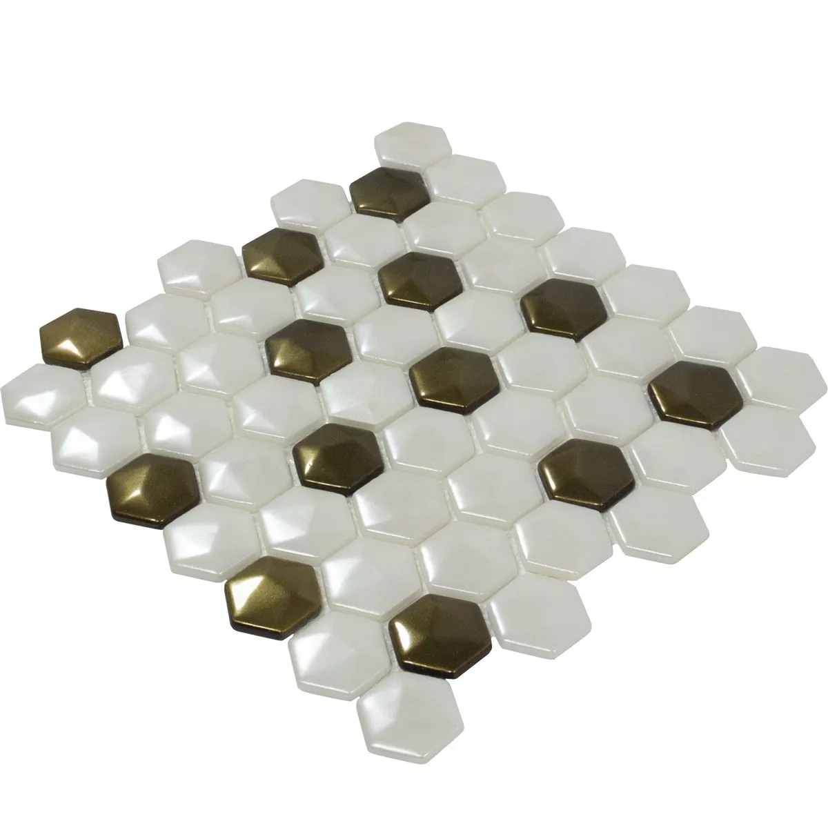 Glasmosaik Plattor Las Vegas Hexagon 3D Vit Guld