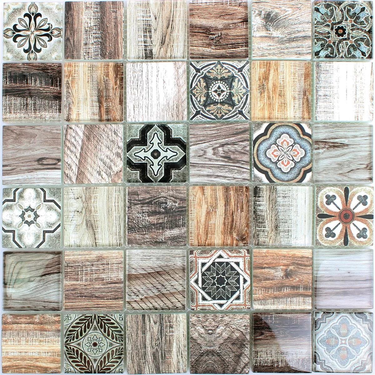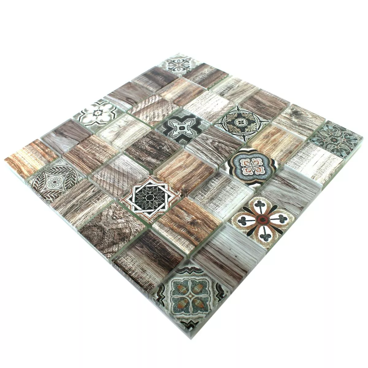 Det ser ut som trä, men det är faktiskt glas! Vi pratar om Makarska glasmosaikplattan. Det är en väggplatta av glas, som har en vacker trälook. Den bruna mosaikplattan har ett mångsidigt mönster, så att ögat alltid ser något nytt.