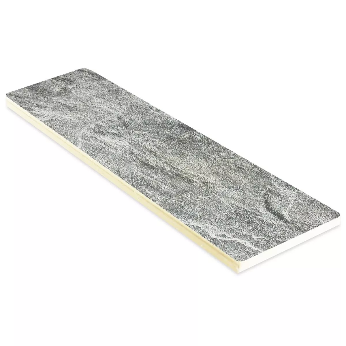 Den antracitfärgade färgen ger plattorna en elegant och tidlös estetik. Den matta ytan säkerställer en behaglig känsla och förhindrar samtidigt uppkomsten av reflexer eller reflektioner. Den vågiga och strukturerade ytan ger också plattorna en intressant struktur som fångar ljuset på ett speciellt sätt, vilket skapar en unik visuell effekt.