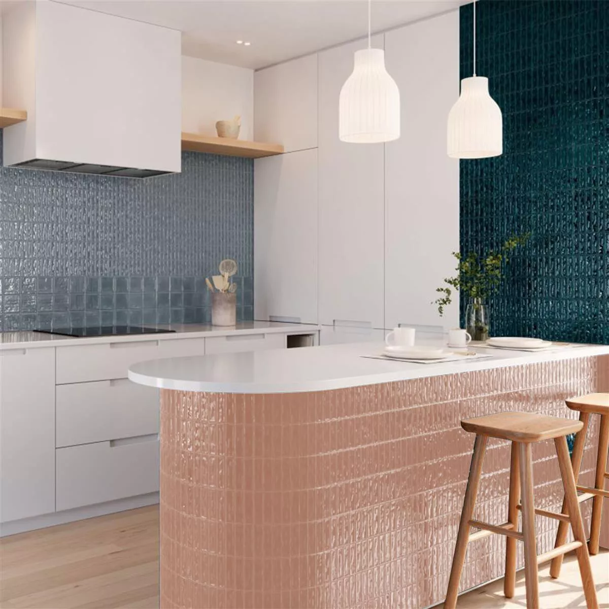 Ta in en charmig vintage-estetik i ditt hem med våra väggplattor Verbania Sticks Shiny Wavy Pink i storlek 20x20cm. Dessa glaserade fyrkantiga plattor med en vågig yta och en glansig finish kommer att lägga till en elegant touch av mjuk rosa till dina rum. Varje förpackning täcker 1 m² och väger 13,25 kg, med totalt 25 brickor per förpackning.