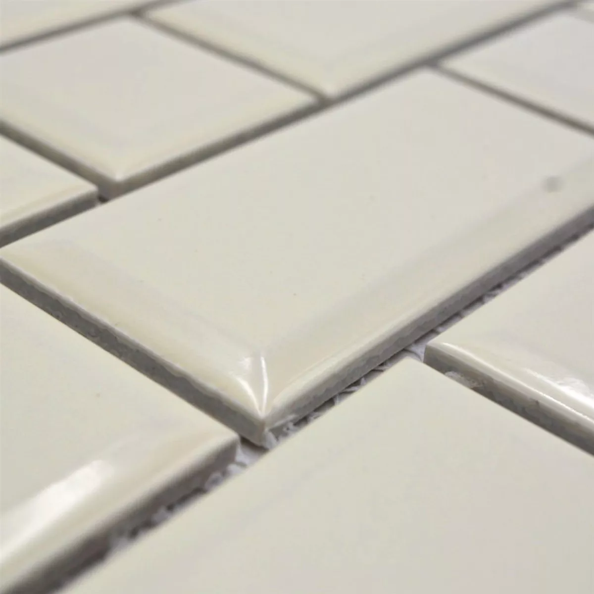 Keramikmosaik Plattor Indra Metro Med Fasett Elfenben