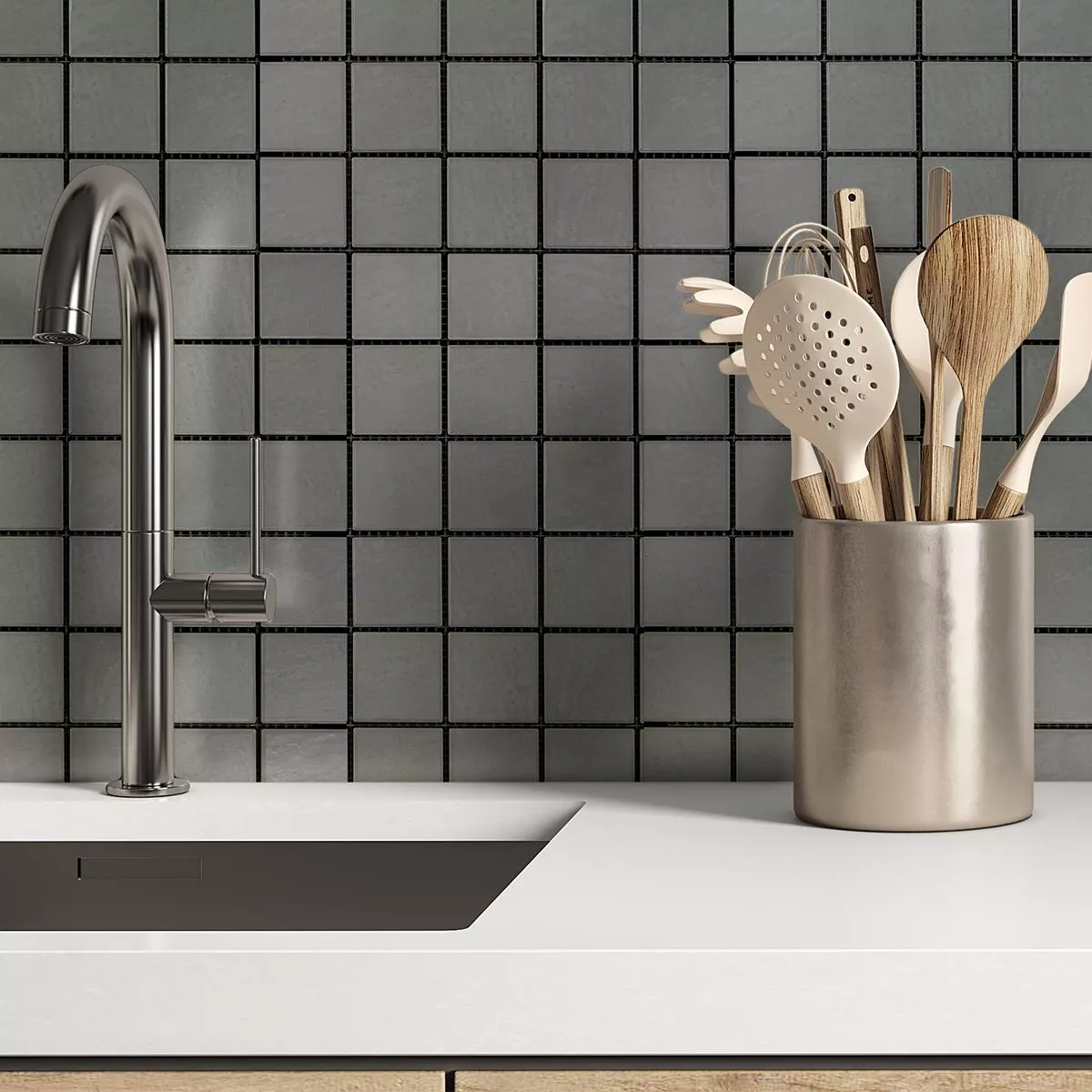 Palazzia keramiska mosaikplattor i stilren grå kombinerar modern estetik med hög funktionalitet. Deras matta yta och autentiska stenlook skapar en tidlös elegans som sömlöst passar in i olika rumskoncept. Med en stenstorlek på 47 x 47 mm och en fyrkantig kakelmatta som mäter 29,7 x 29,7 cm, som redan är limmad på ett nät redo för montering, är installationen extra enkel och exakt.