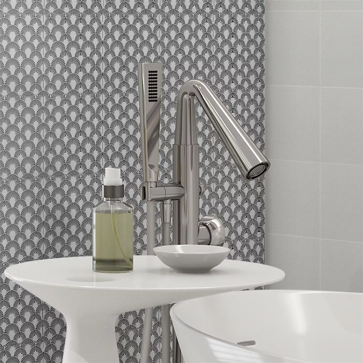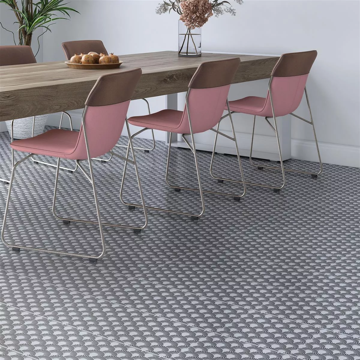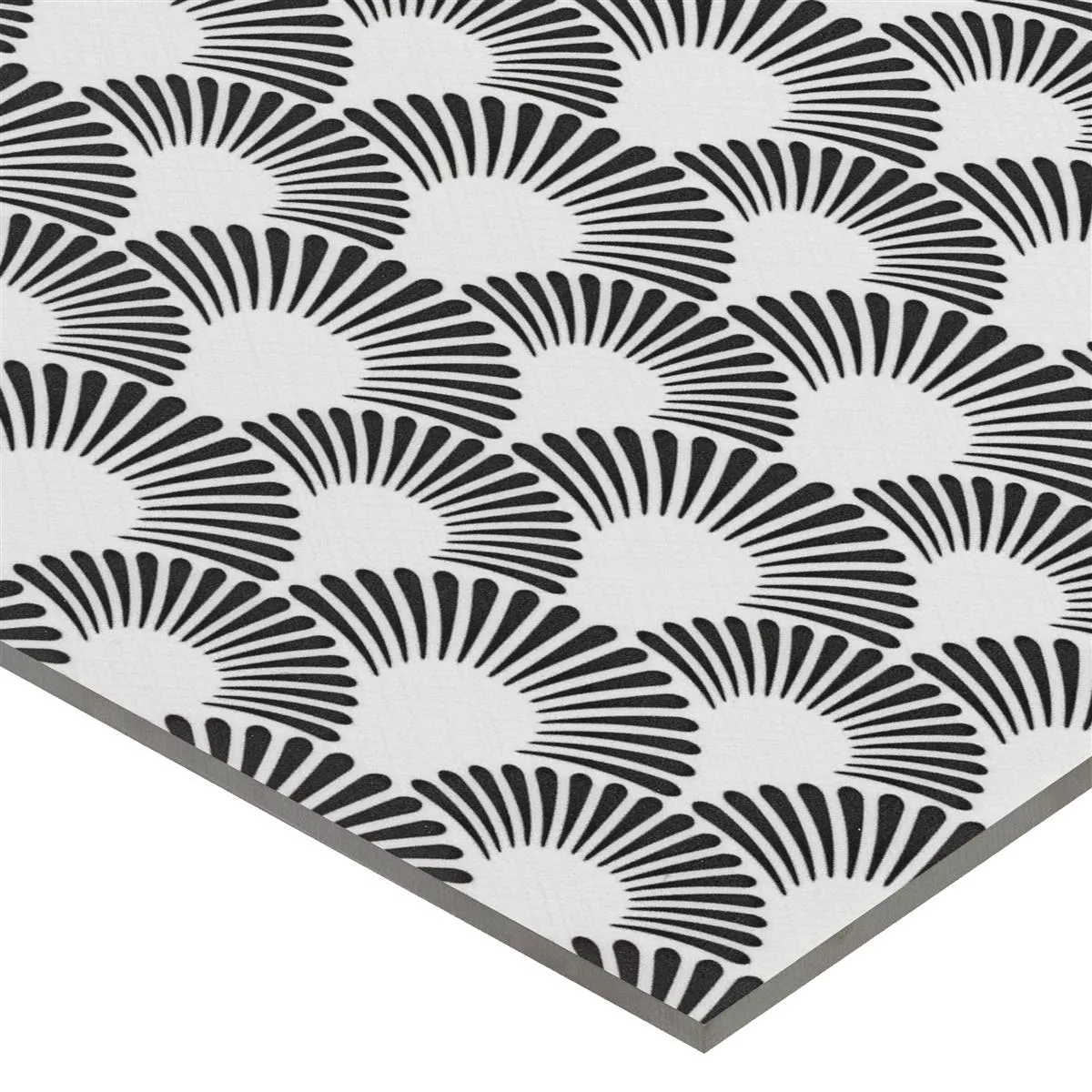 Upptäck den tidlösa elegansen hos våra vägg- och golvplattor med svarta blomdekor gjorda av glaserat porslinsstengods och ge dina rum en touch av sofistikering. Dessa plattor kombinerar stilren design med funktionella egenskaper och skapar en elegant atmosfär i vardagsrum, kök, badrum och duschar.