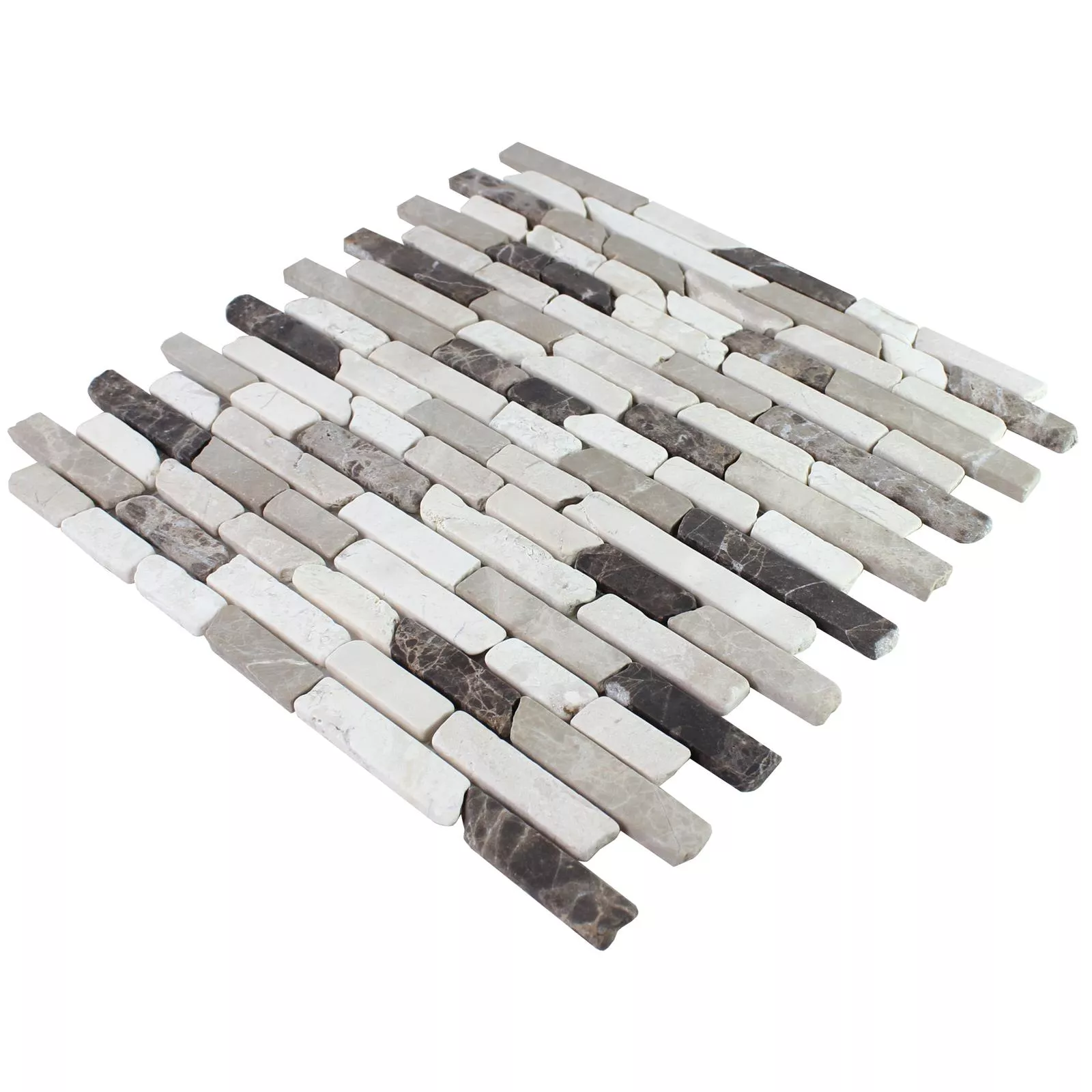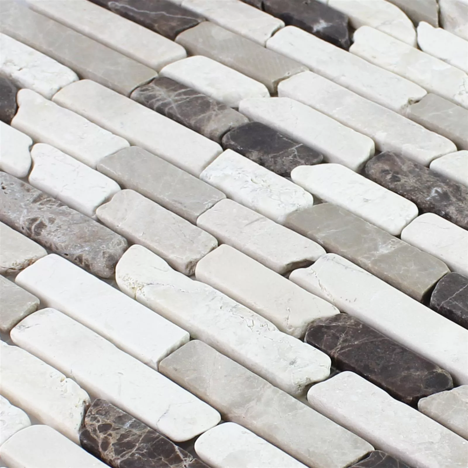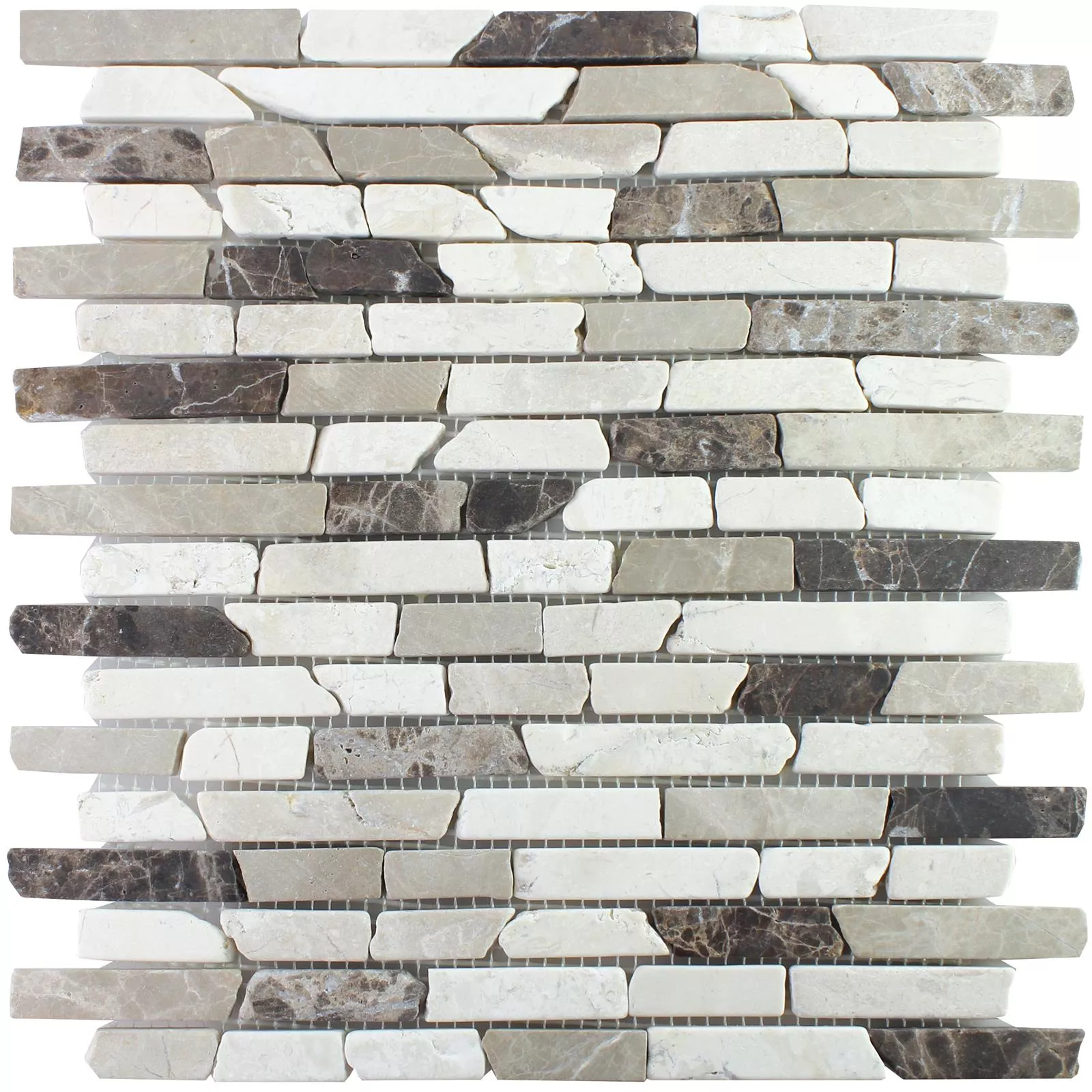 Marmor är en ofta ådrad, mycket hård kalksten som används särskilt i skulptur och som byggmaterial. Materialinblandningar i den ursprungliga bergarten leder till en typisk dekor, till en så kallad marmorering. De beige och bruna varianterna som presenteras här är färgade av limonit, även känd som brun järnmalm, som ofta finns i den breda bergmassan. De innehåller olika tillsatser av mineraler och olika kristallformationer, vilket gör att deras omisskännliga karaktär och ett förstklassigt material, oavsett om det är på väggen eller som golvbeläggning, används flitigt inomhus, vilket kommer att ge dig nöje. Den är också lämplig för alla våtutrymmen.