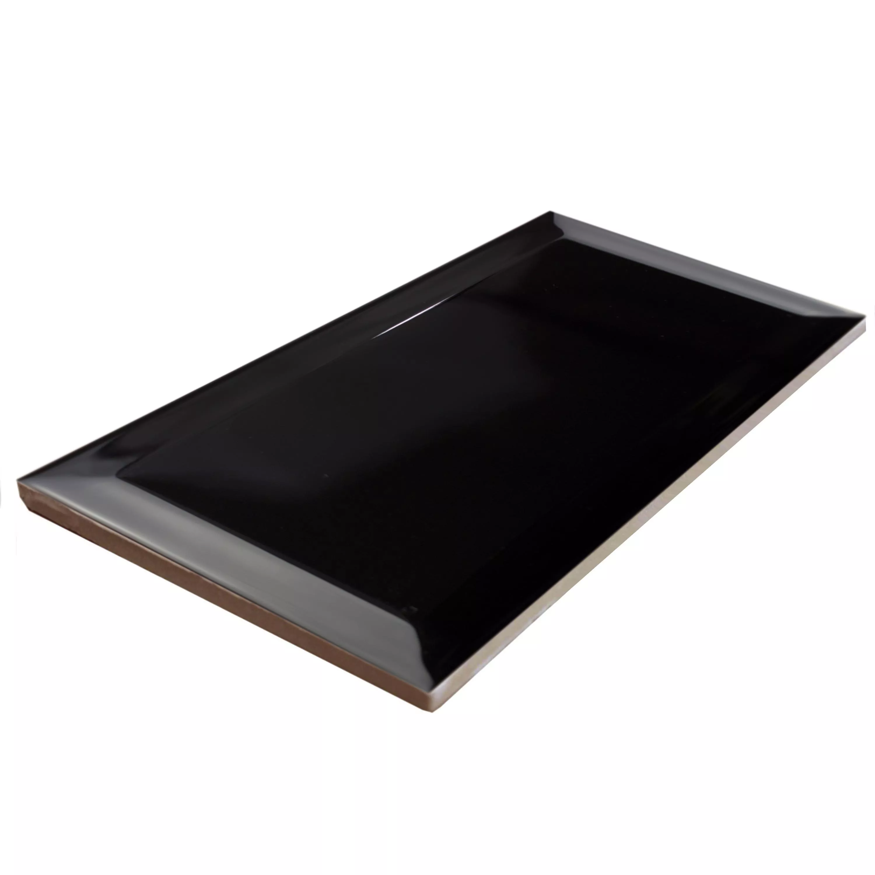 Metro Kakel Brussel Med Fasett 10x20x0,7cm Negro