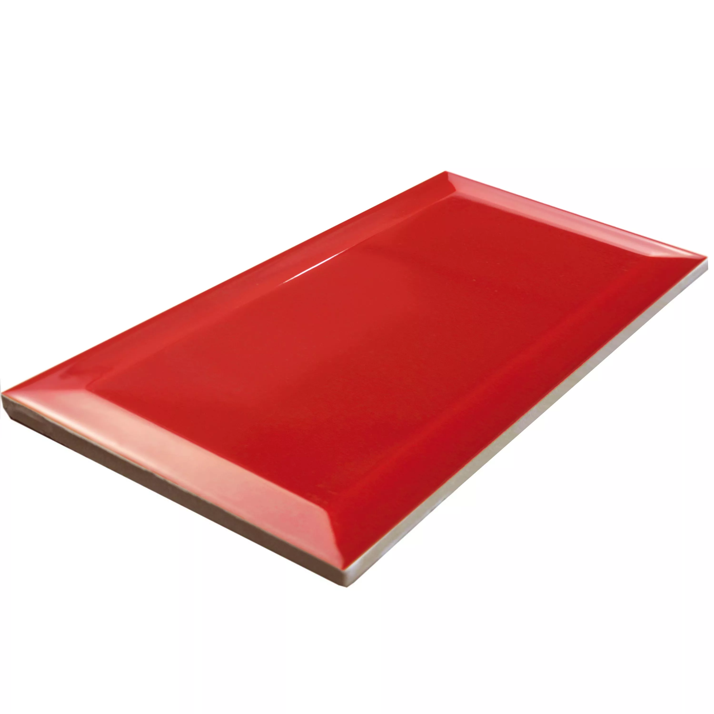 Metro Kakel Brussel Med Fasett 10x20x0,7cm Rojo