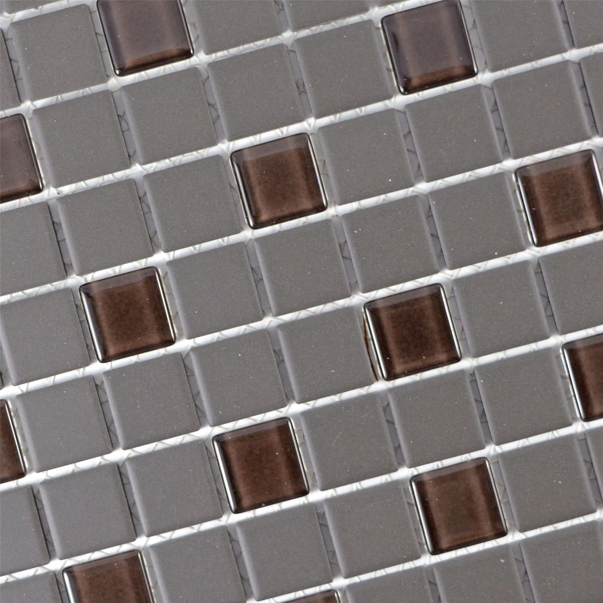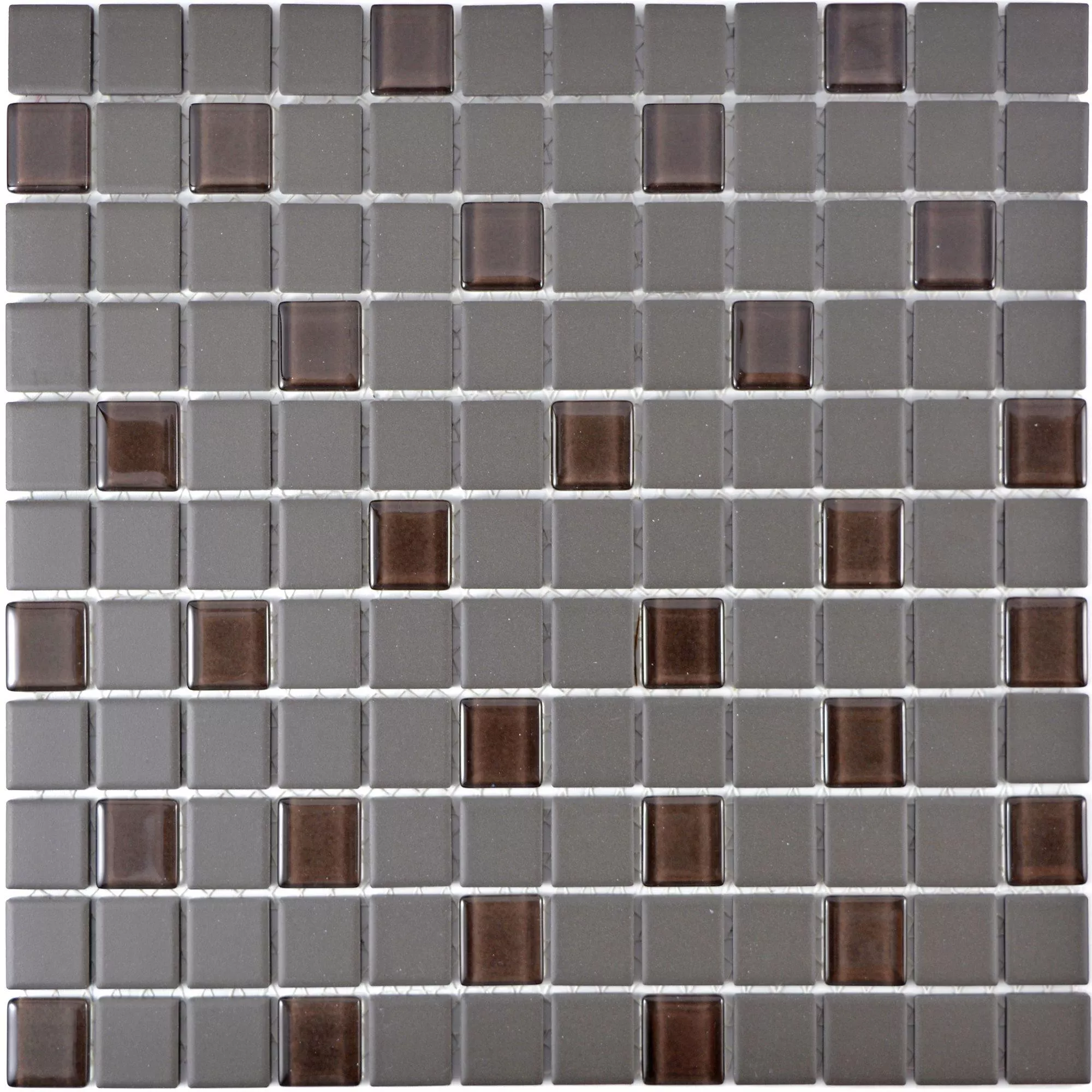 Mosaikplattan "Garden" i den eleganta färgen brungrå kombinerar sofistikerad design med mångsidiga användningsområden. Denna kakel är gjord av en sofistikerad materialblandning av keramik och glas och erbjuder både matta och blanka ytor som ger ditt rum ett modernt men tidlöst utseende. Med en stenstorlek på 25x25mm och en tjocklek på 5,2mm, levereras plattan i ett kvadratiskt format på 32,6x30cm, där varje matta täcker en yta på 0,098m².