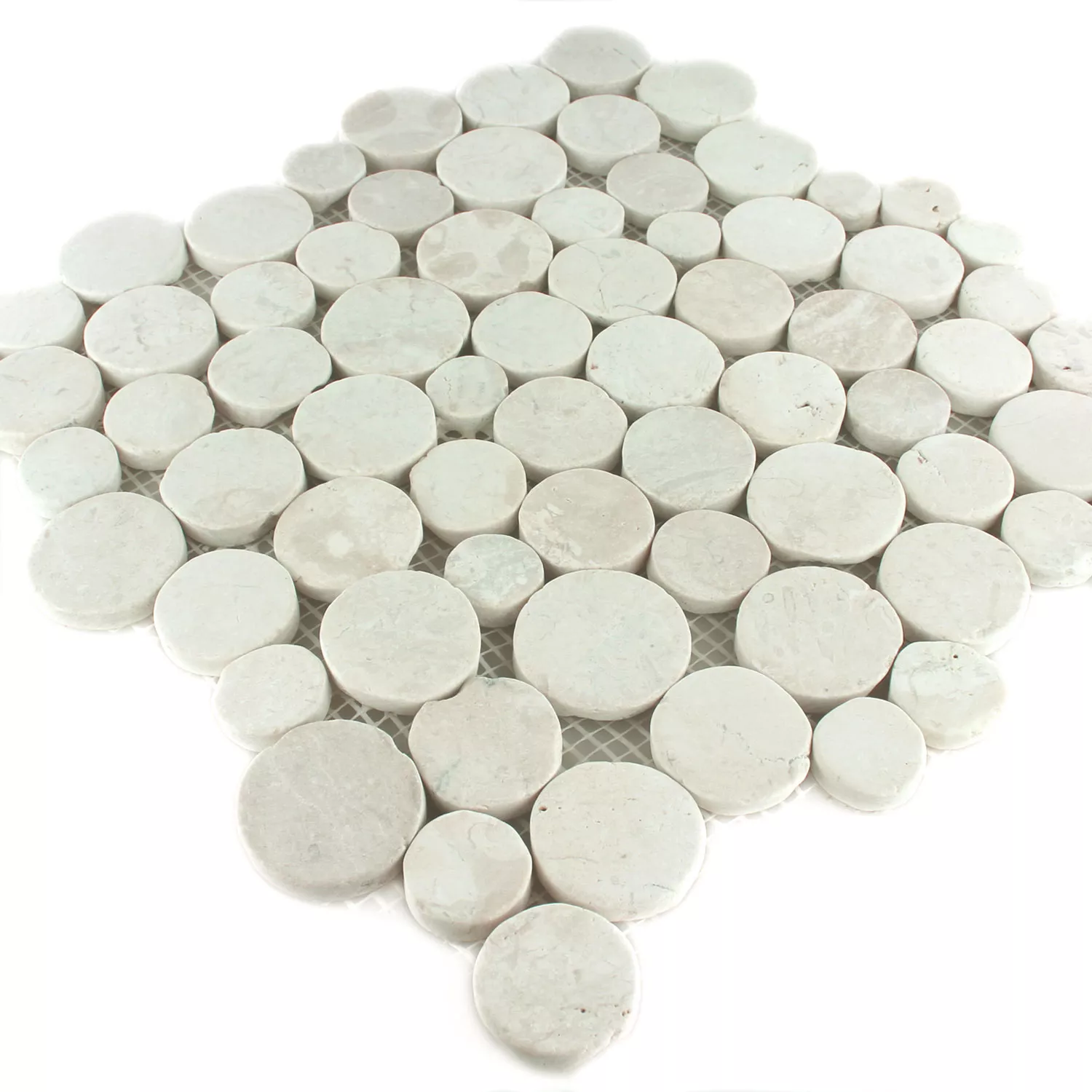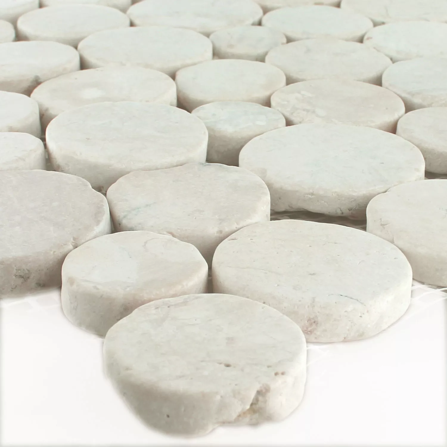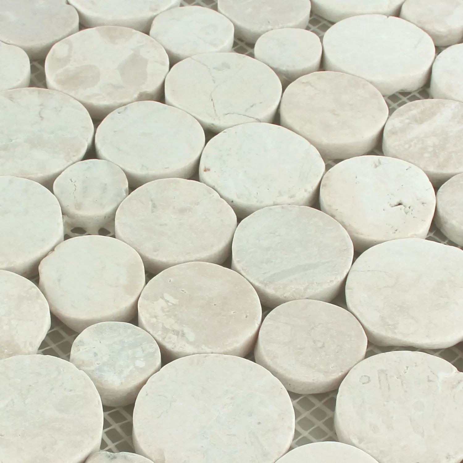 Designalternativ med flodstensmosaikplattor av natursten Mynt Rund Vit