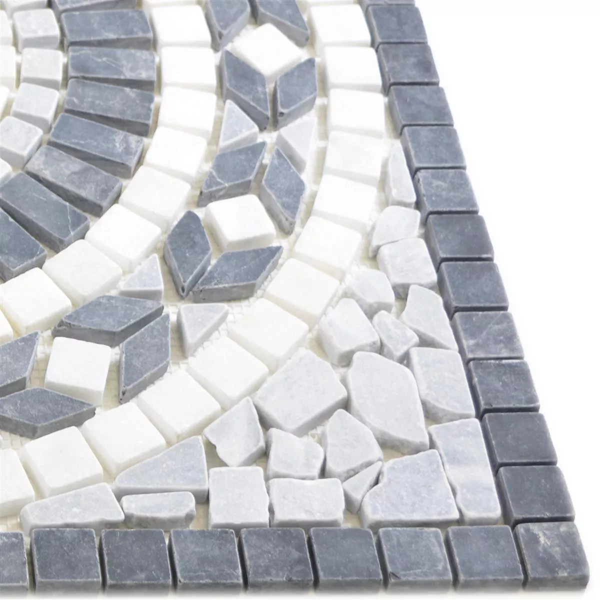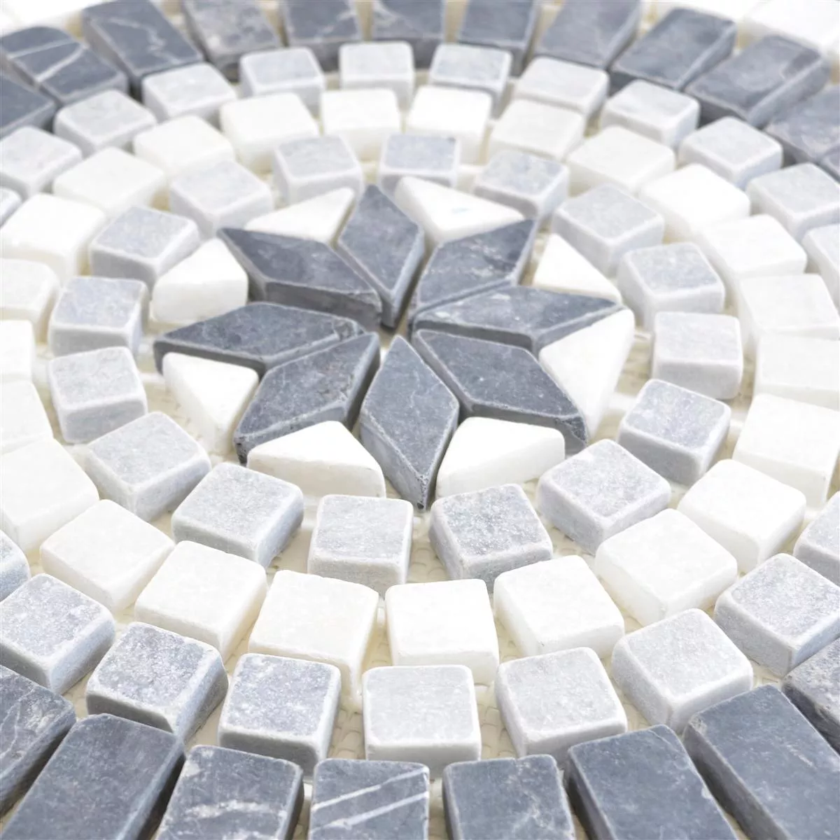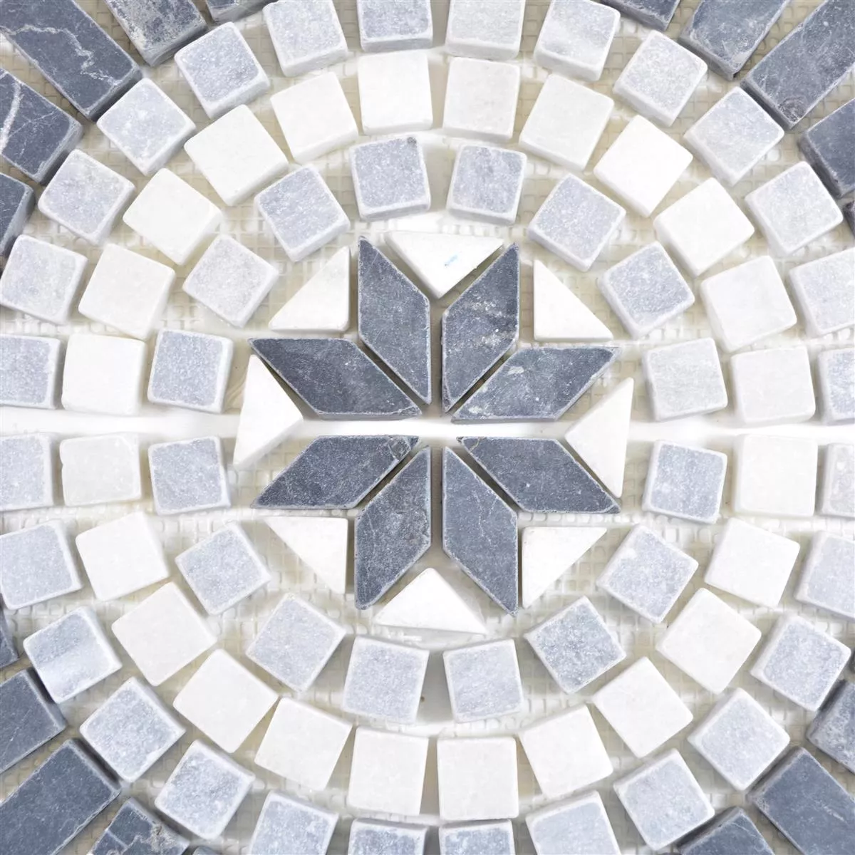 Naturstenen Rosone Frisco-plattor är en riktig skönhet. Den är svartvit och kommer som en fyrkantig kakelmatta. De enskilda stenarna hålls i varierande storlekar. Anledningen till detta ligger i det chica mosaikmönstret. Det är ett cirkelmönster med en sorts blomma i mitten. Det är ett snyggt kakel som är ett nöje att titta på.