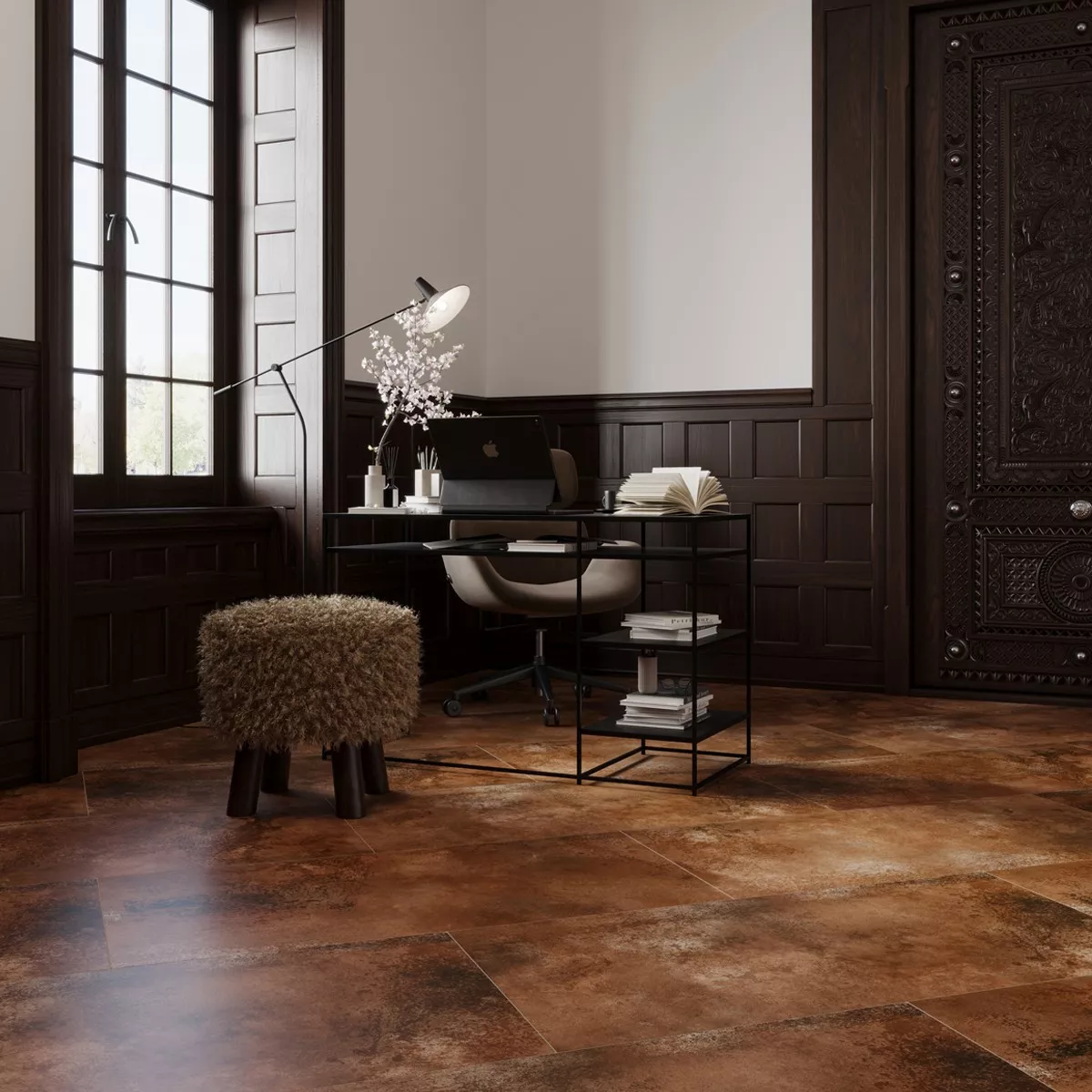 Oregon porslinsgolvplattor i stengods kombinerar modern design med hög funktionalitet. Dess varma bruna färg med en metallisk look ger varje rum en ädel och samtidigt industriell touch. Tack vare den mattglaserade ytan skapas ett elegant utseende som skapar en stilren atmosfär i vardagsrummet såväl som i köket eller badrummet.