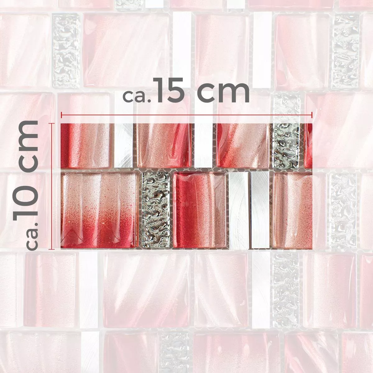Prov Glas Metall Mosaik Union Röd Silver
