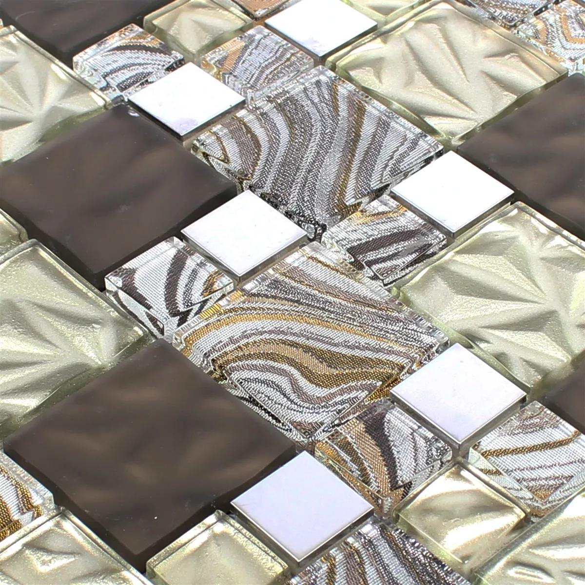Prov Glas Metall Rostfritt Stål Mosaik Zadar Beige Brun