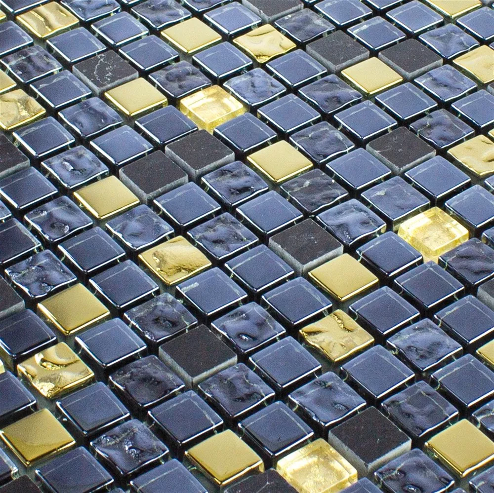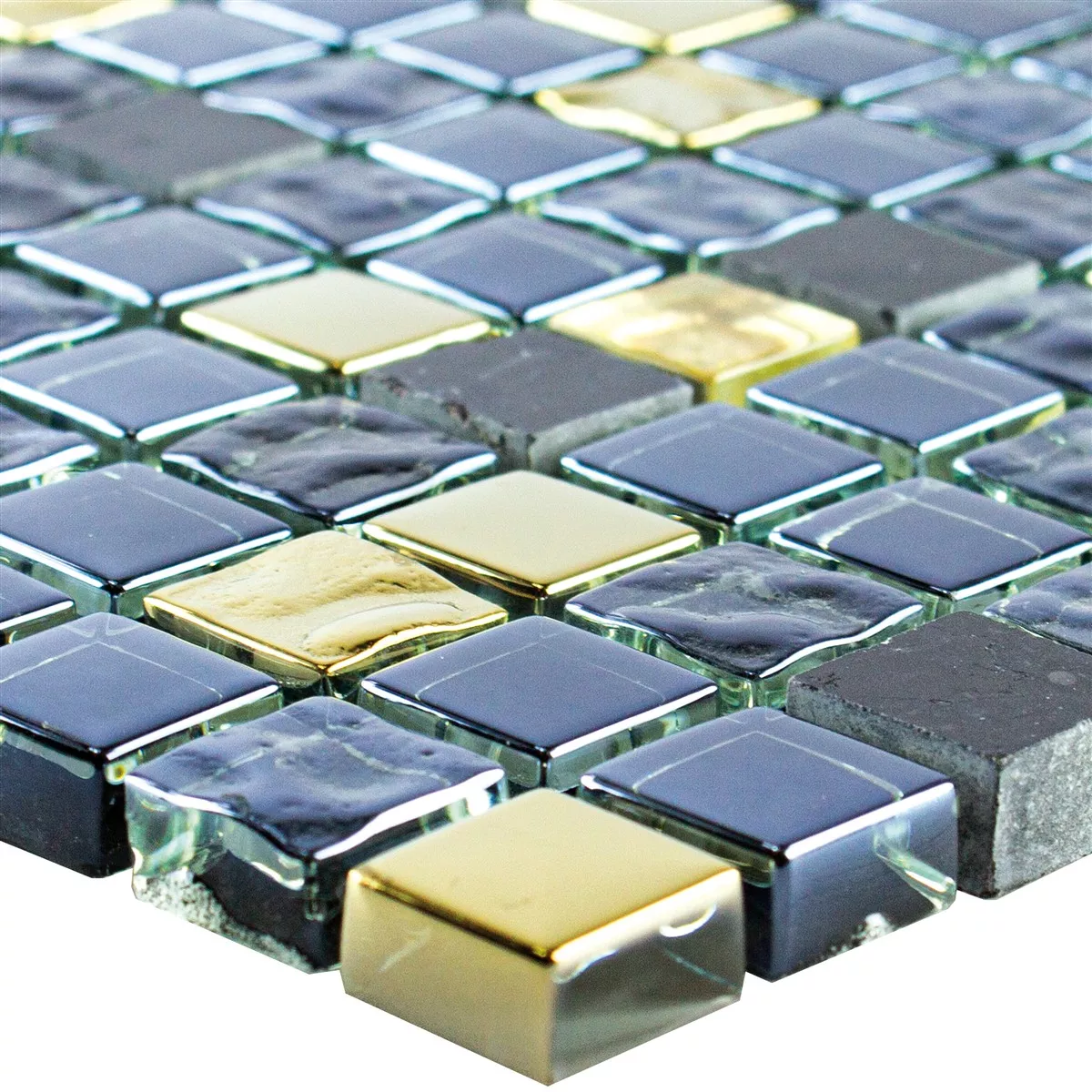 Prov Glas Natursten Mosaik Cooktown Svart Guld