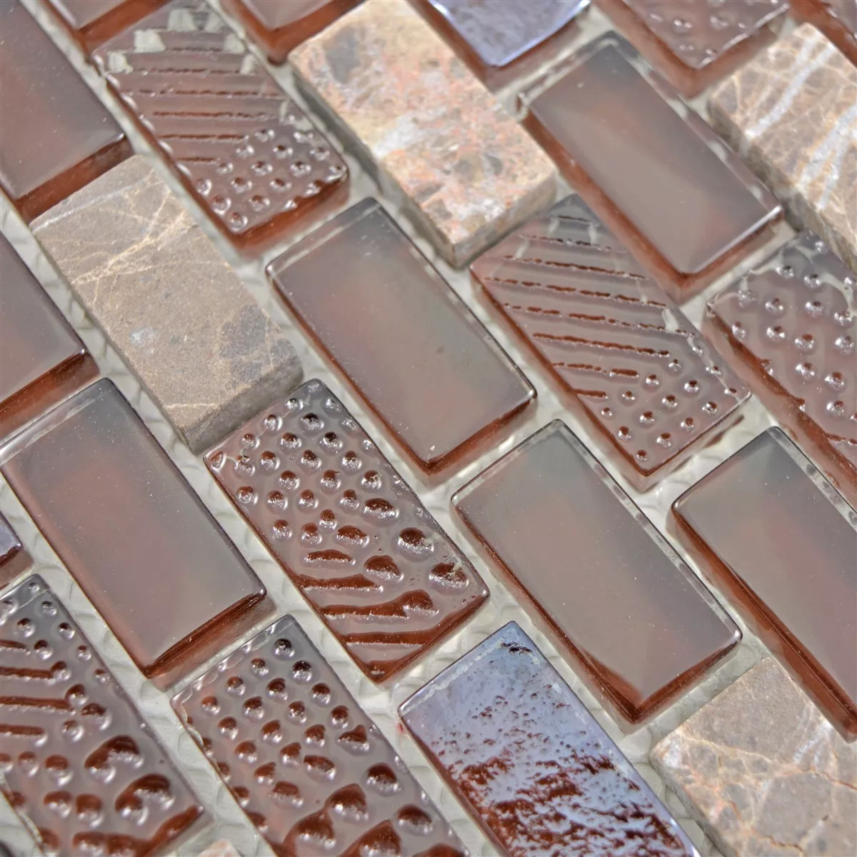 Prov Glas Natursten Mosaik Limona Brun