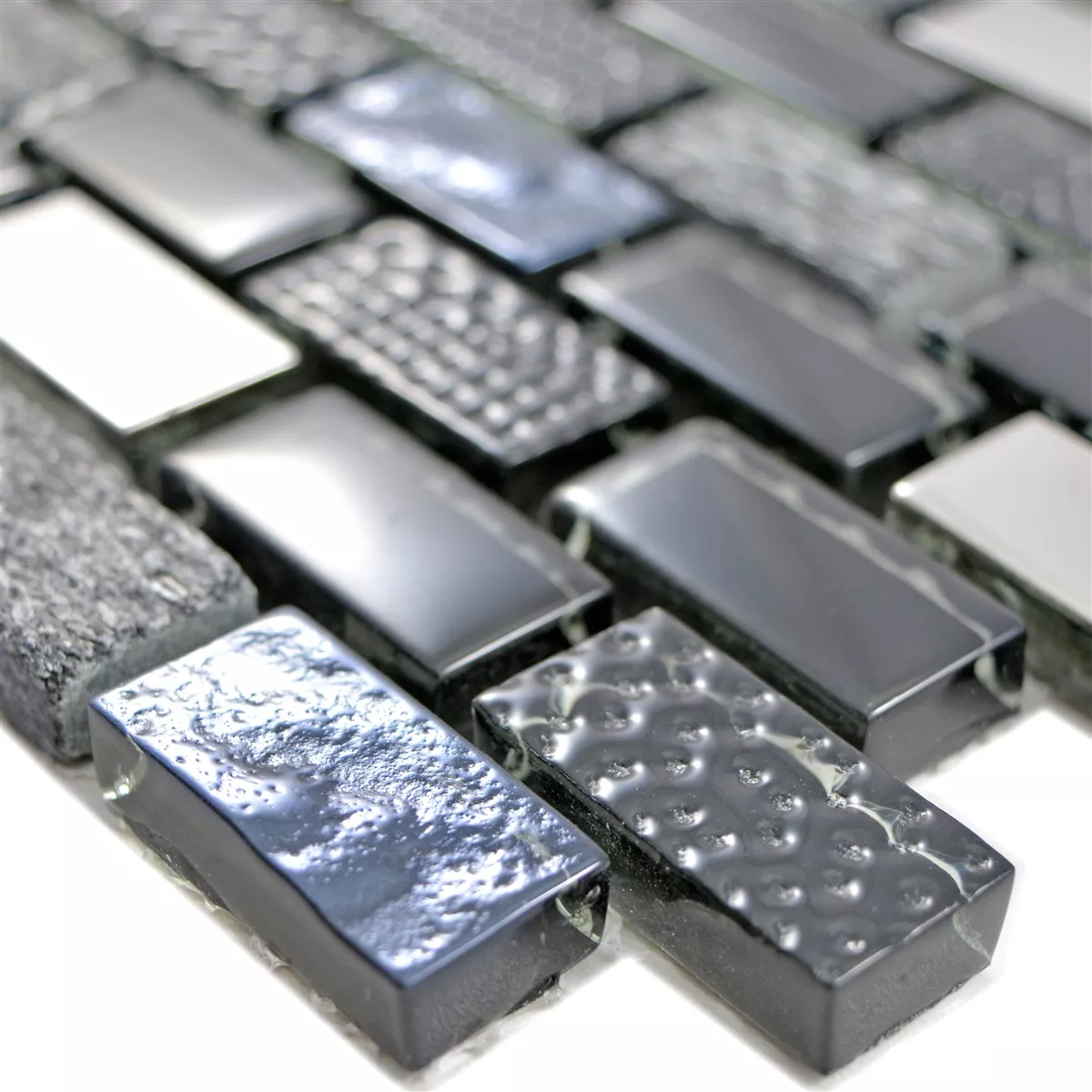 Prov Glas Natursten Mosaik Limona Svart