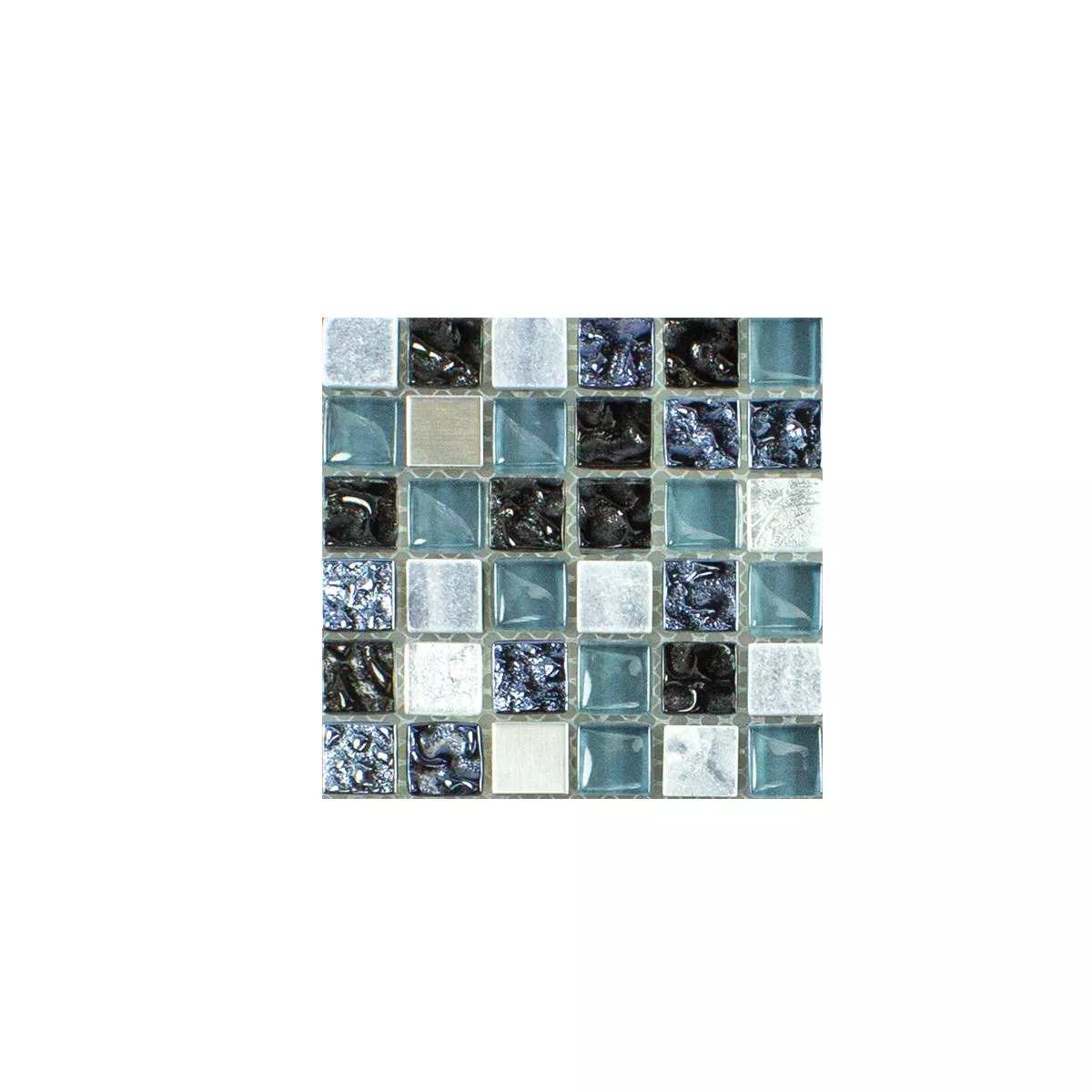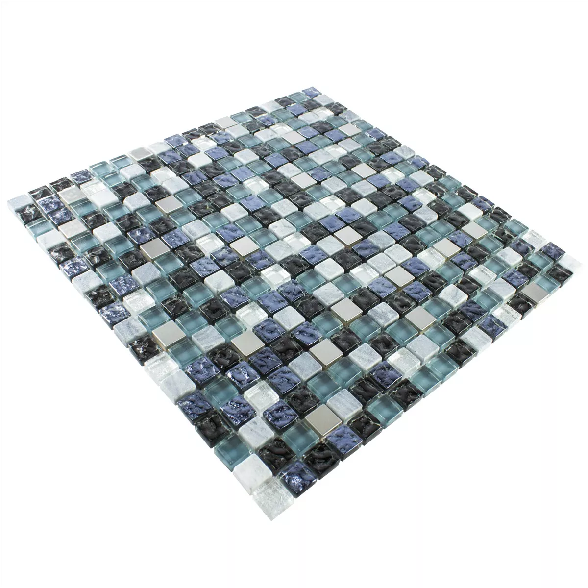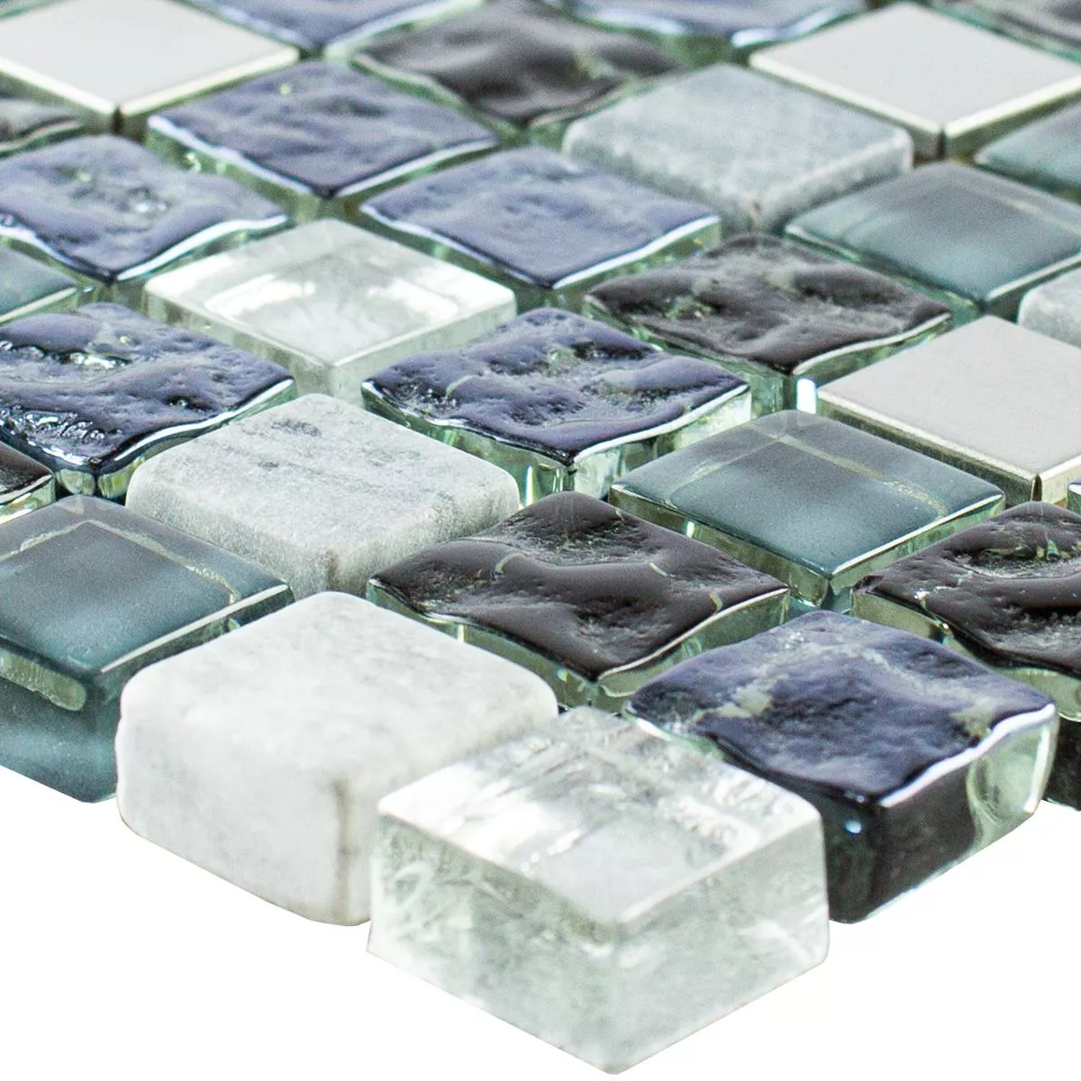 Prov Glas Natursten Rostfritt Stål Mosaik Dysart Grå Blå Silver