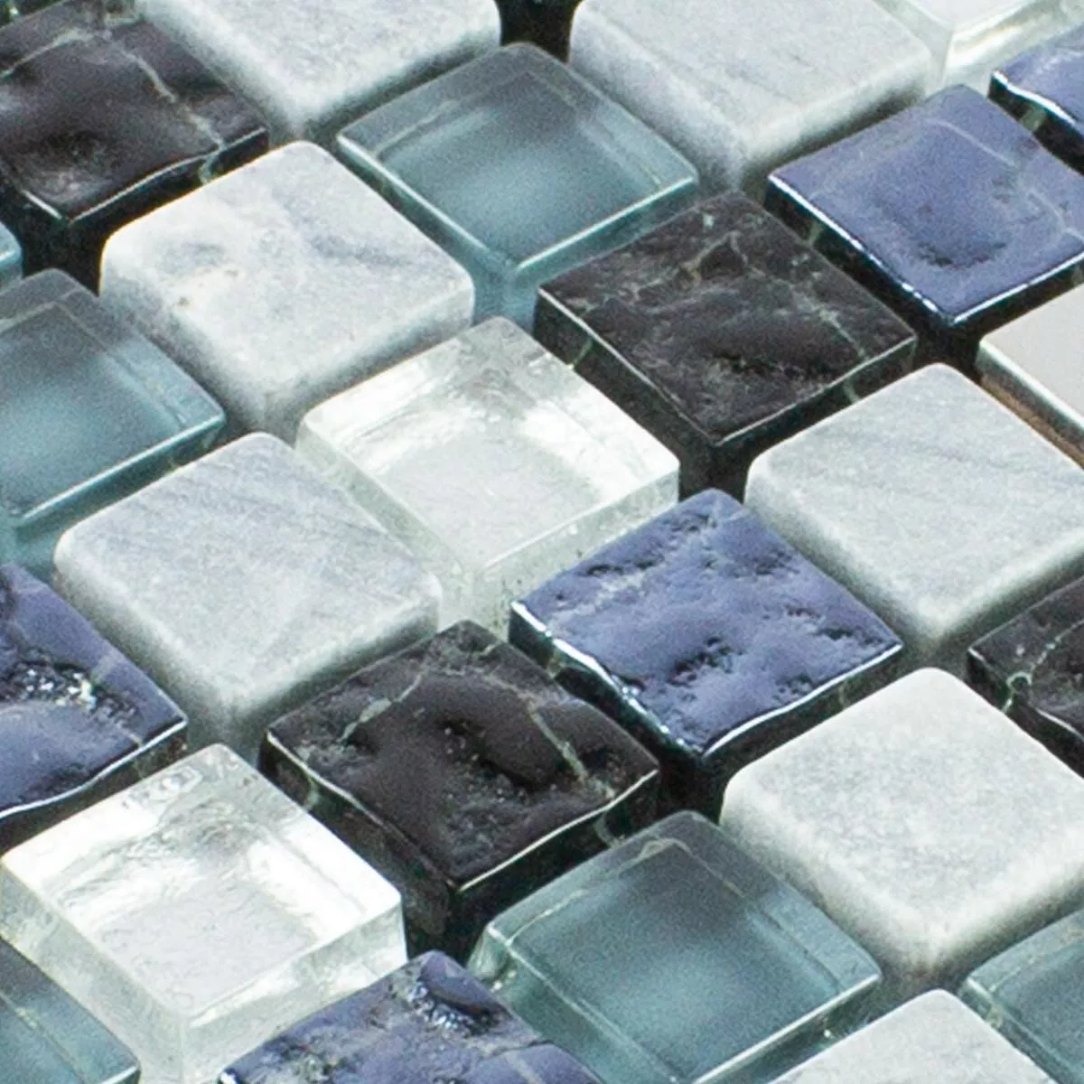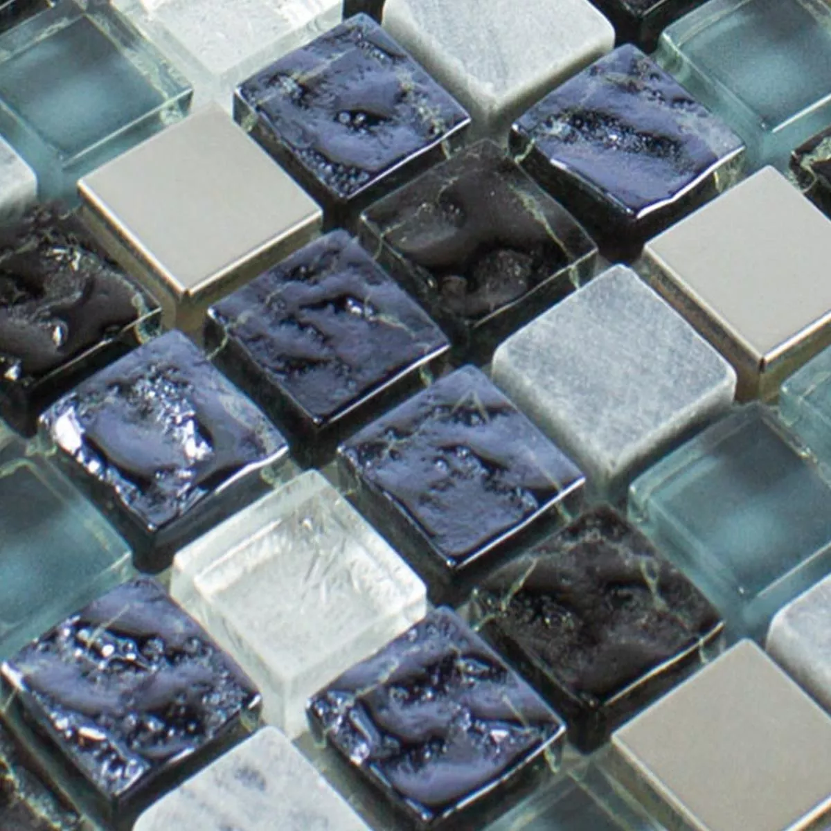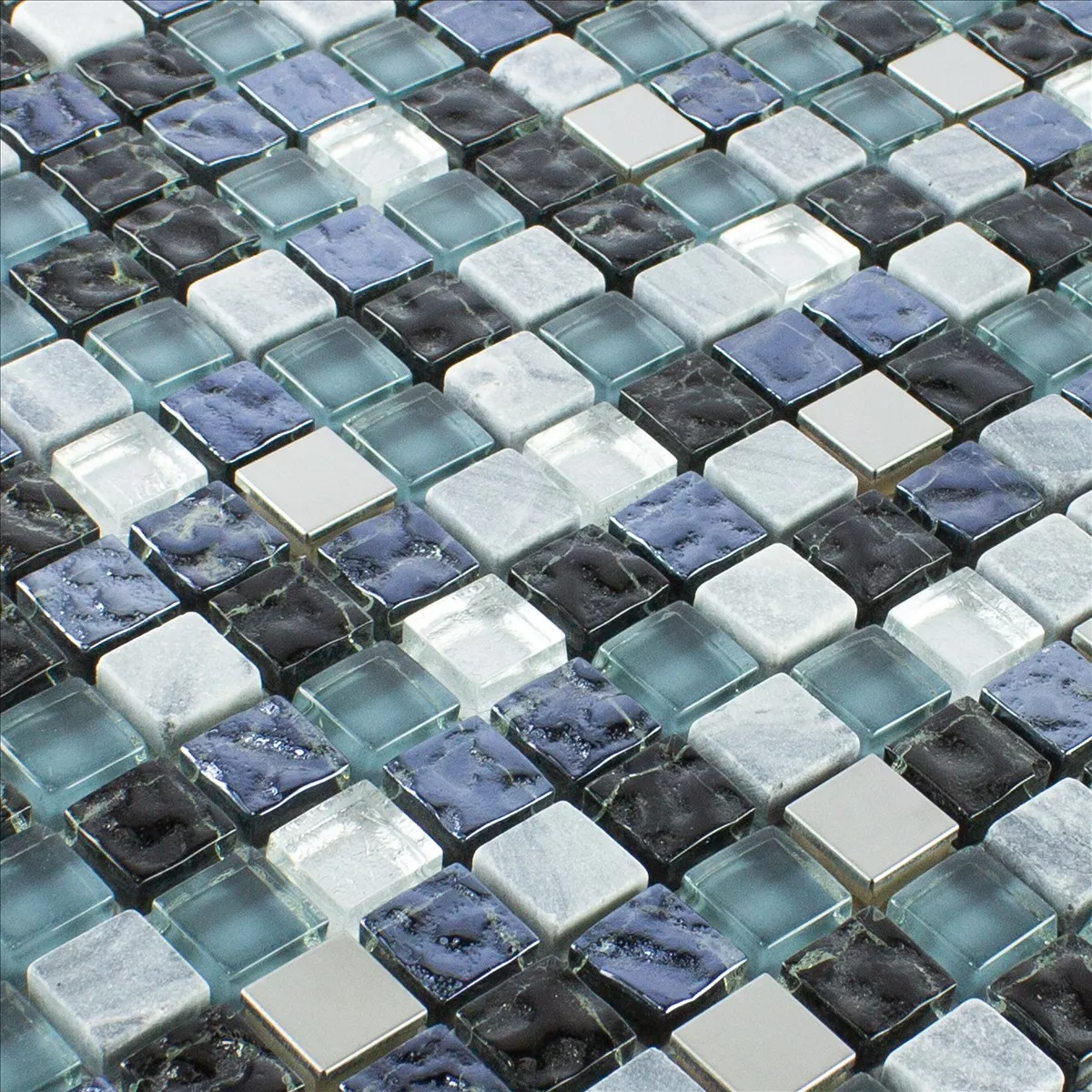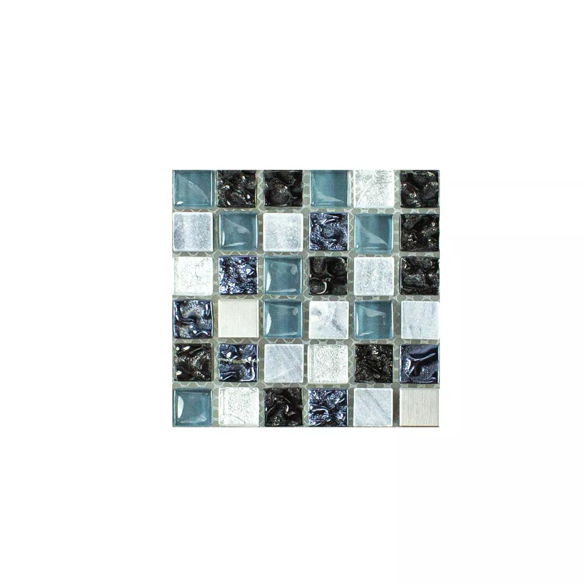 Prov Glas Natursten Rostfritt Stål Mosaik Dysart Grå Blå Silver