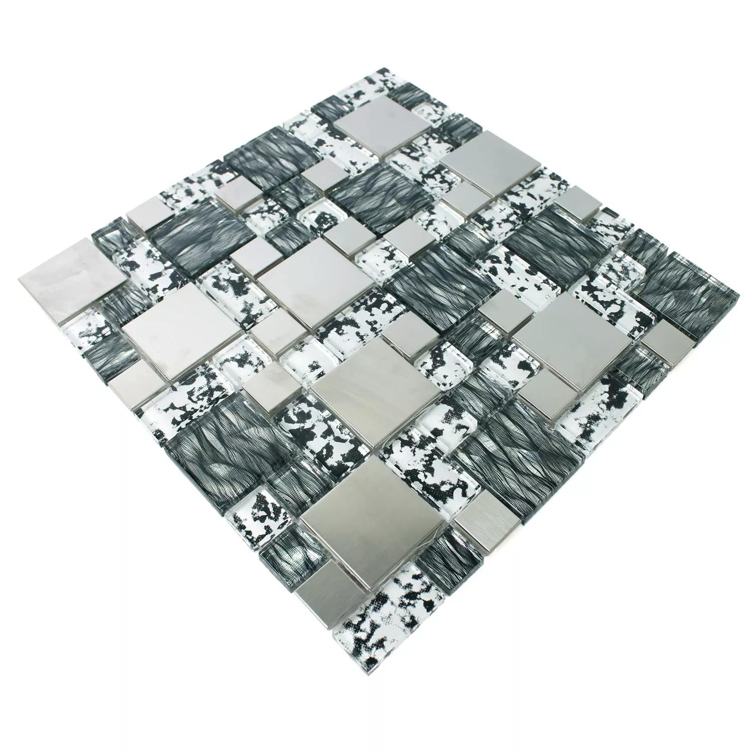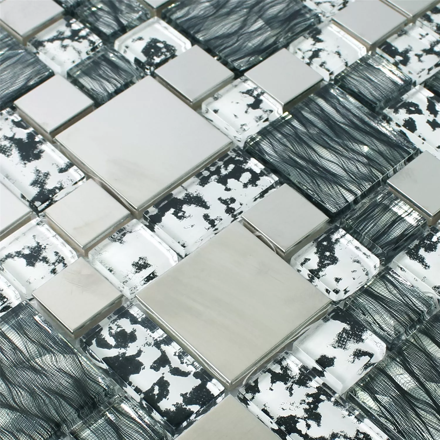 Prov Glas Rostfritt Stål Mosaik Rio Svart Silver Vit