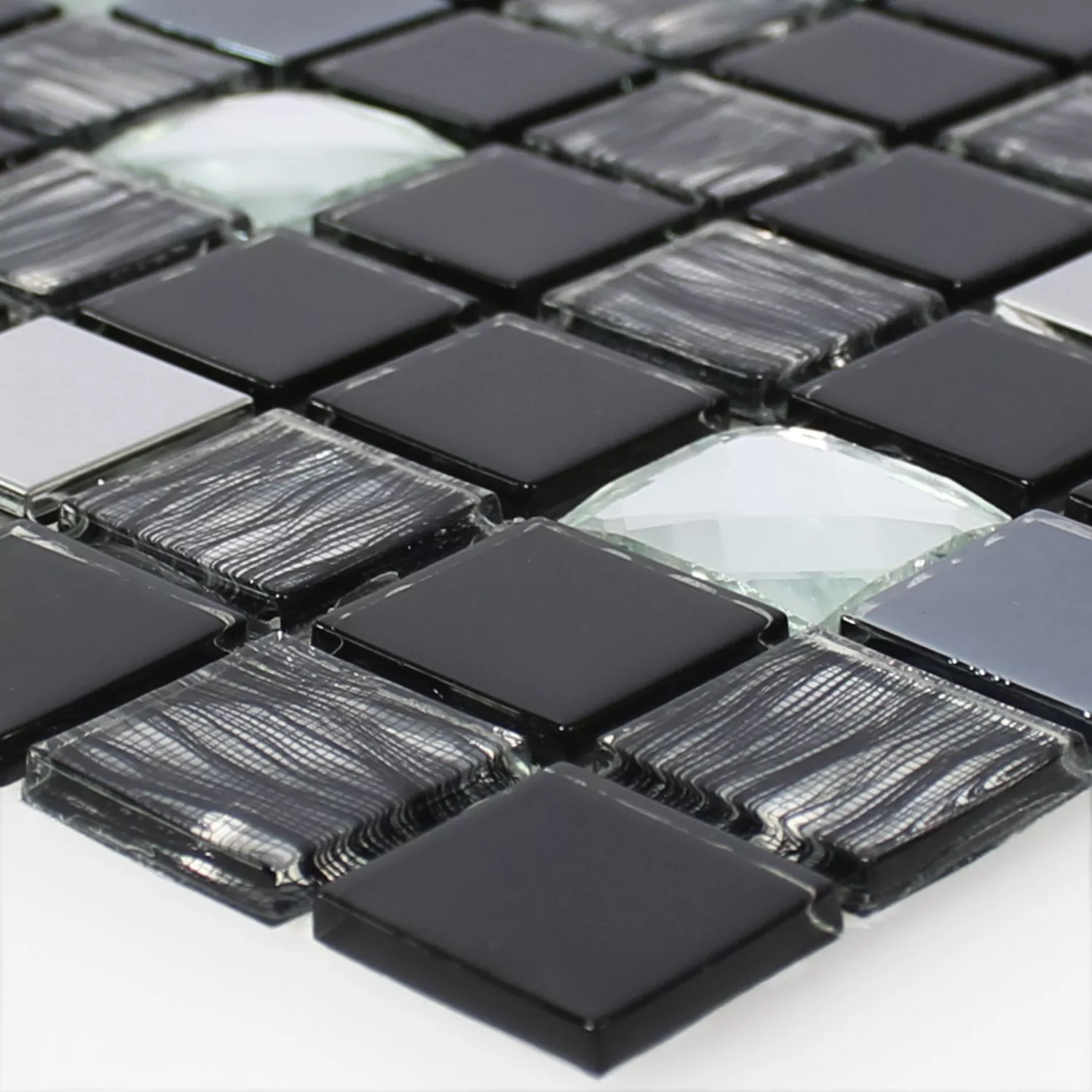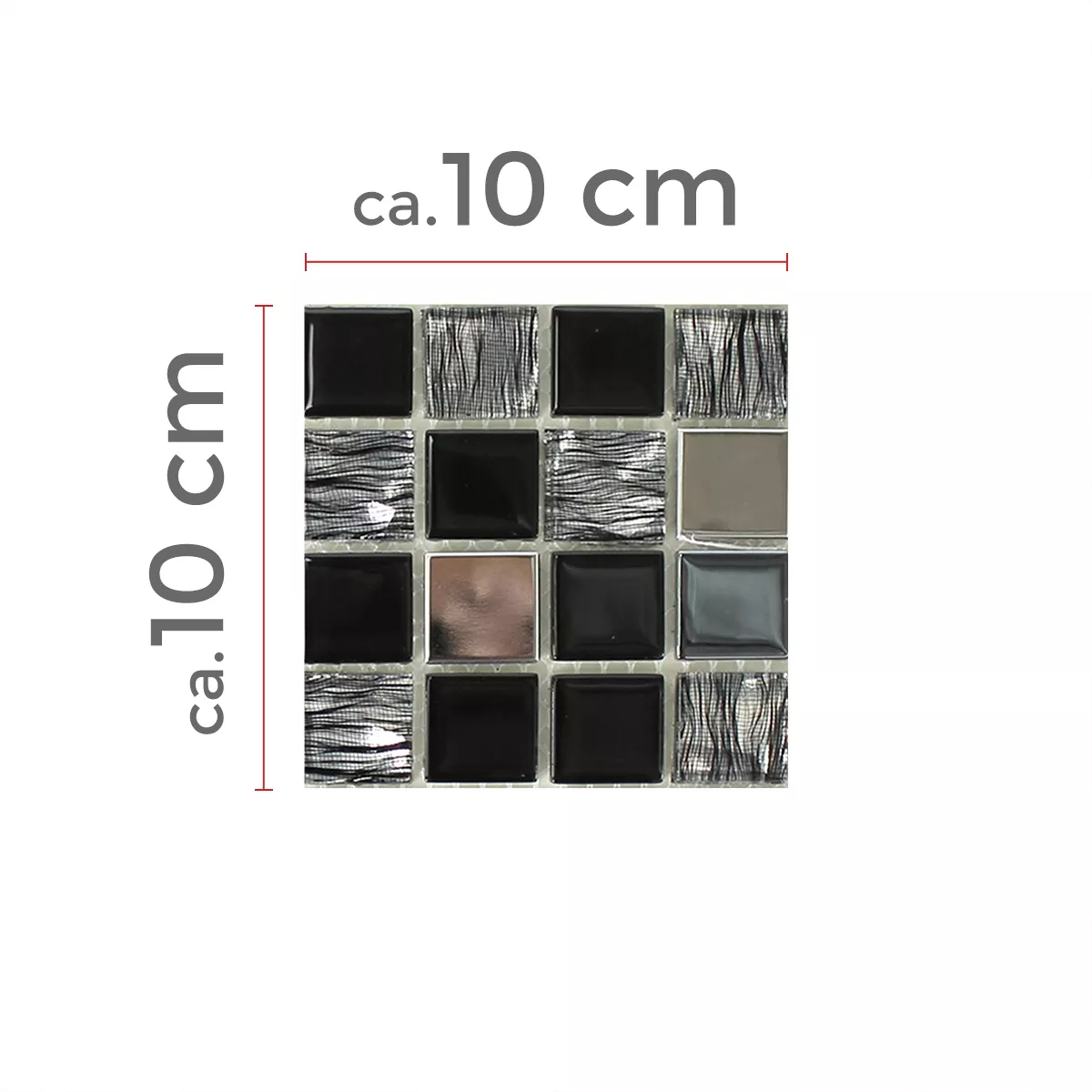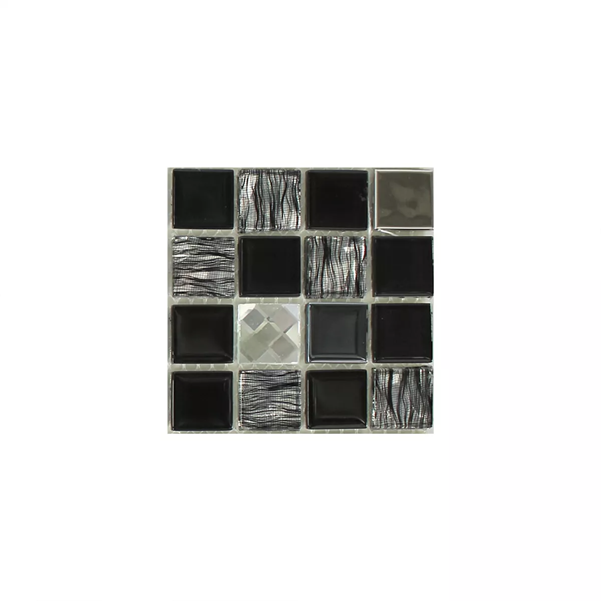 Prov Glas Rostfritt Stål Mosaik Självhäftande Svart Silver