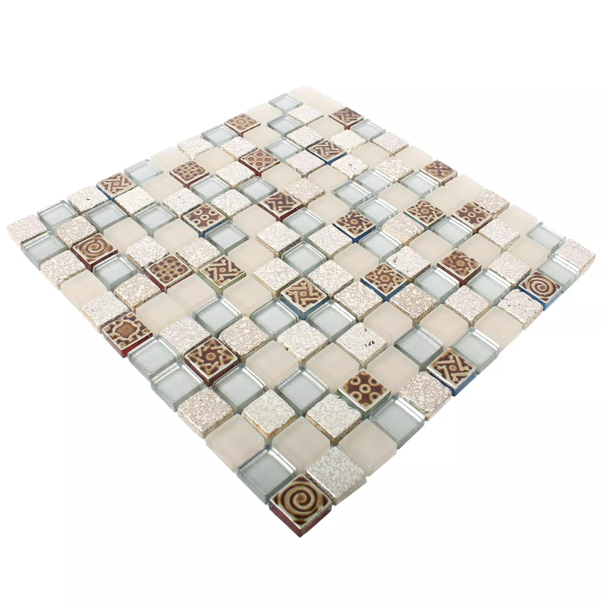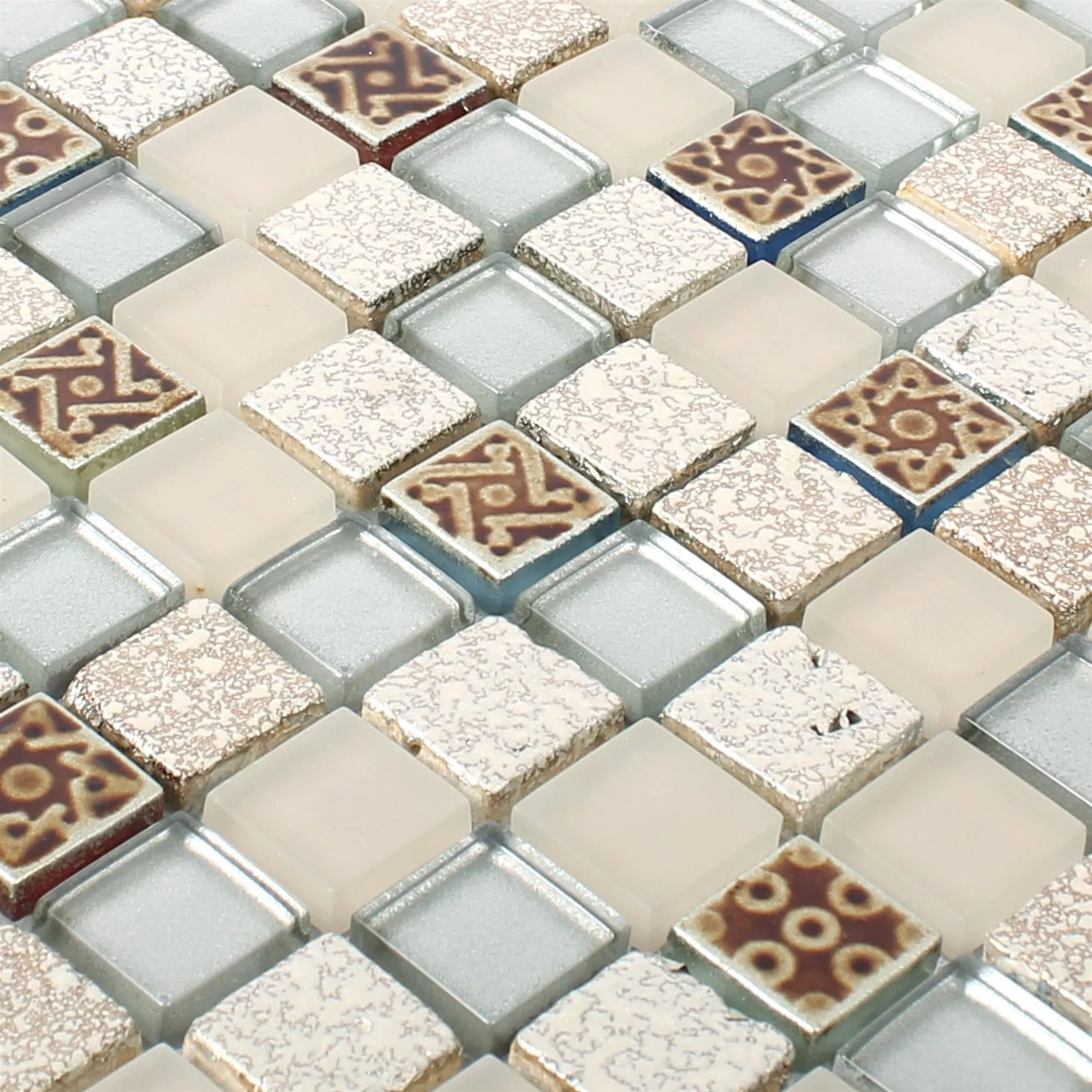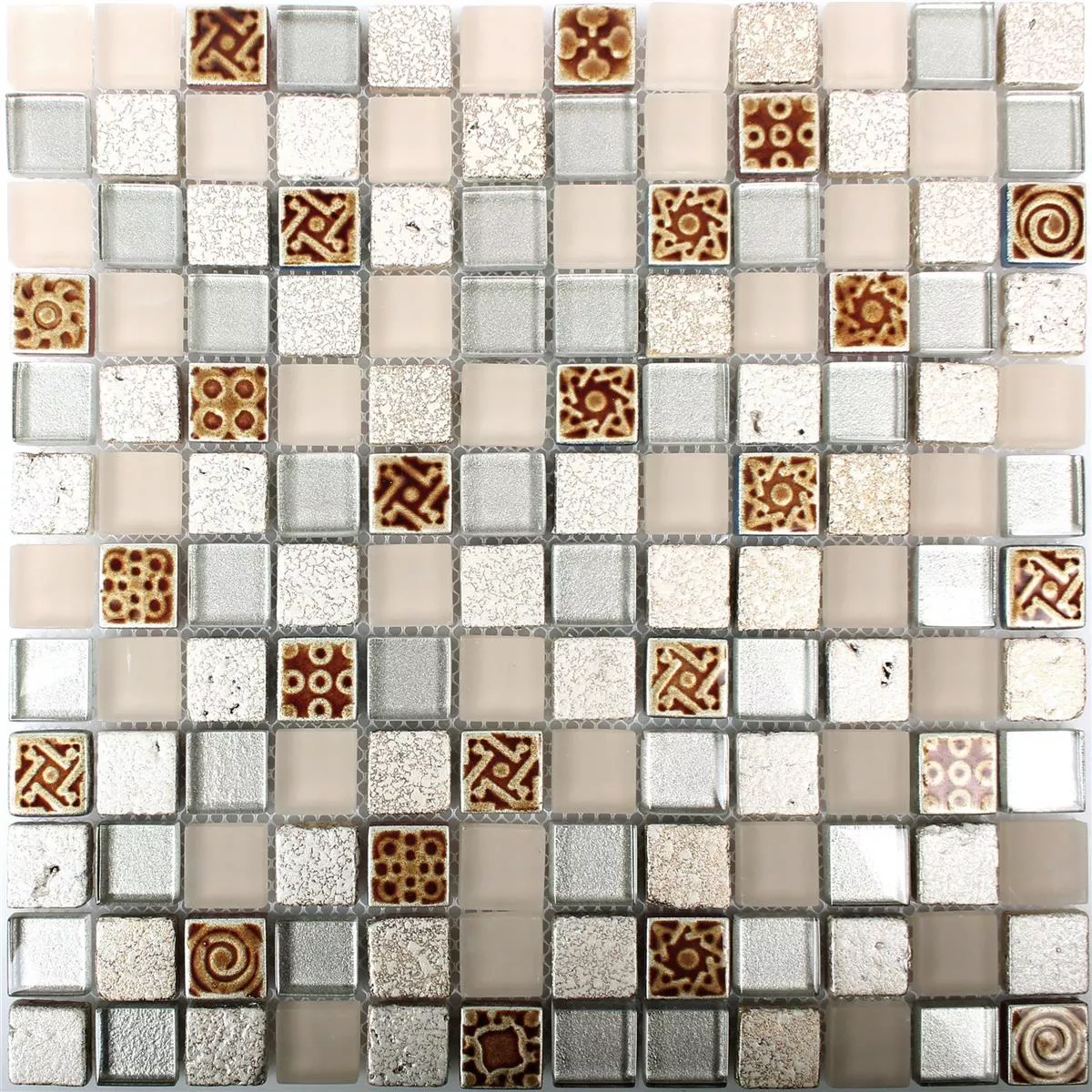 Prov Glasmosaik Natursten Kakel Kobold Beige Silver