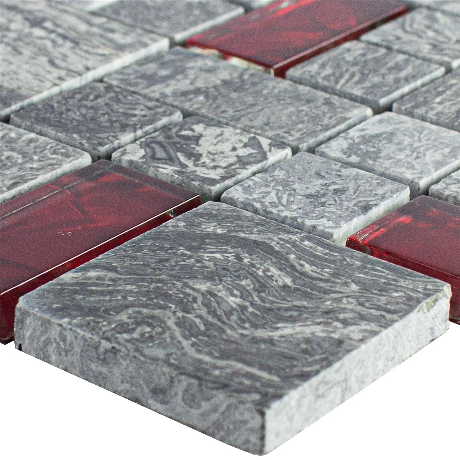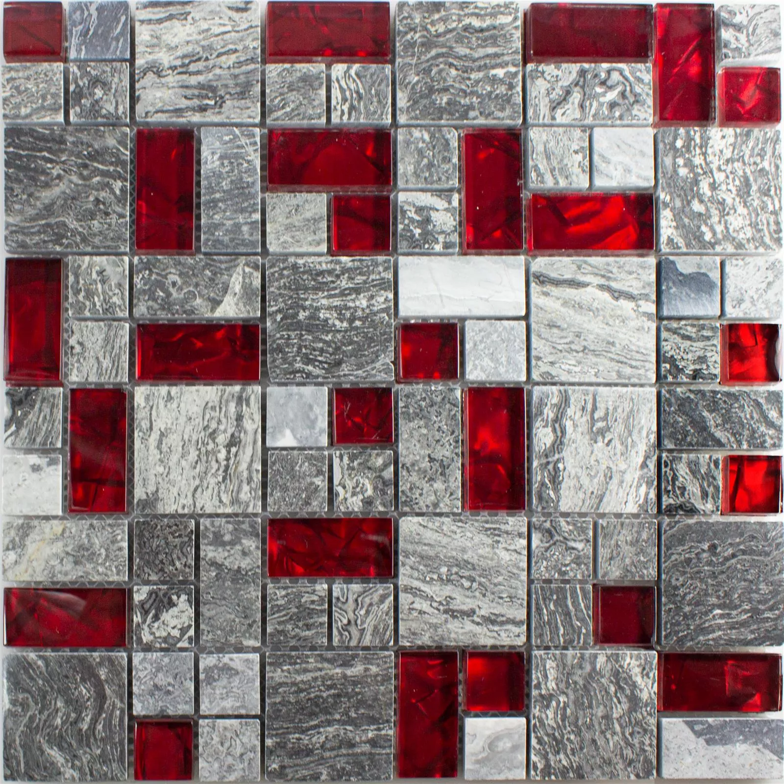 Prov Glasmosaik Natursten Kakel Manavgat Grå Röd ix