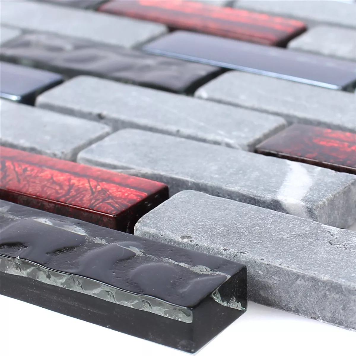 Prov Glasmosaik Natursten Kakel Marley Svart Röd Grå