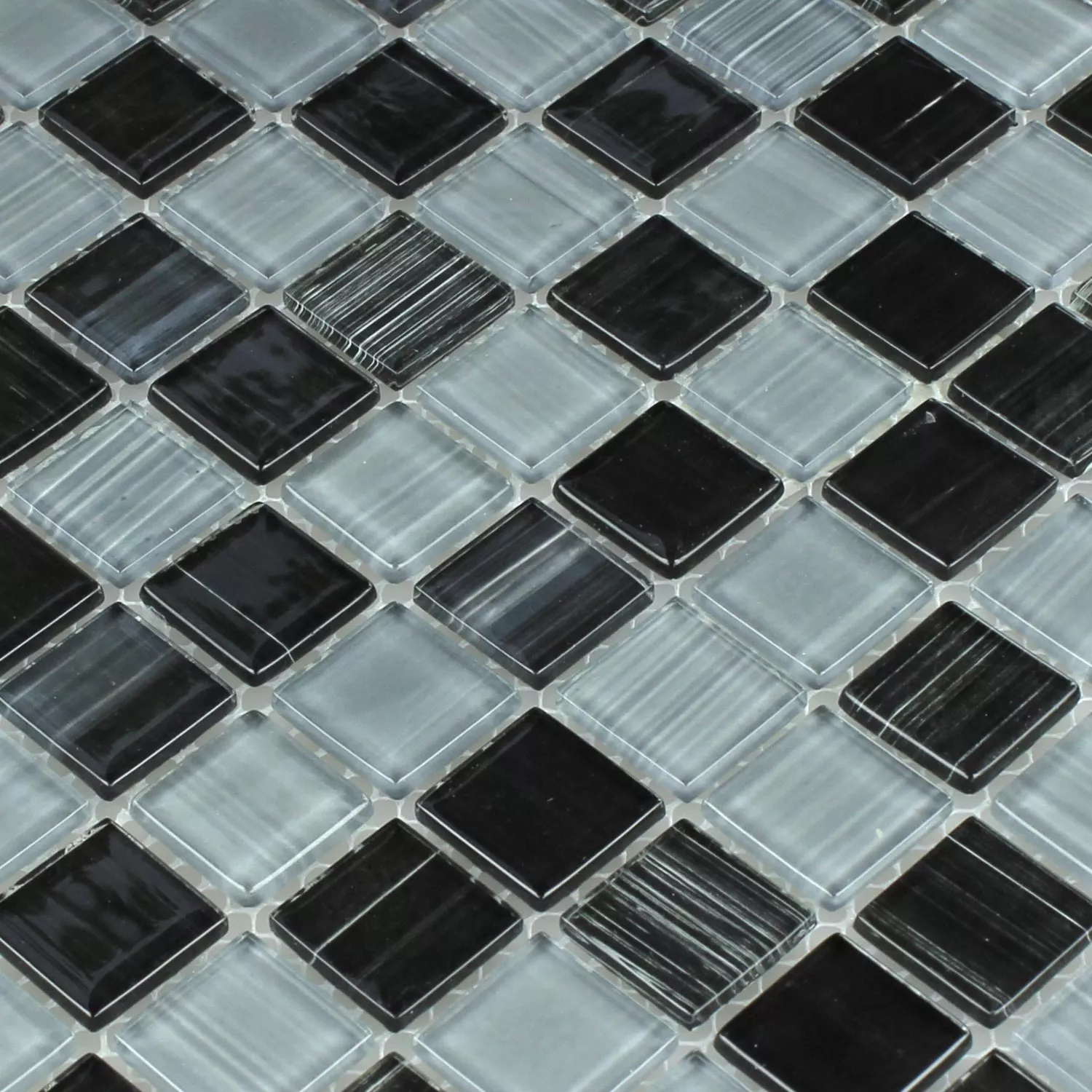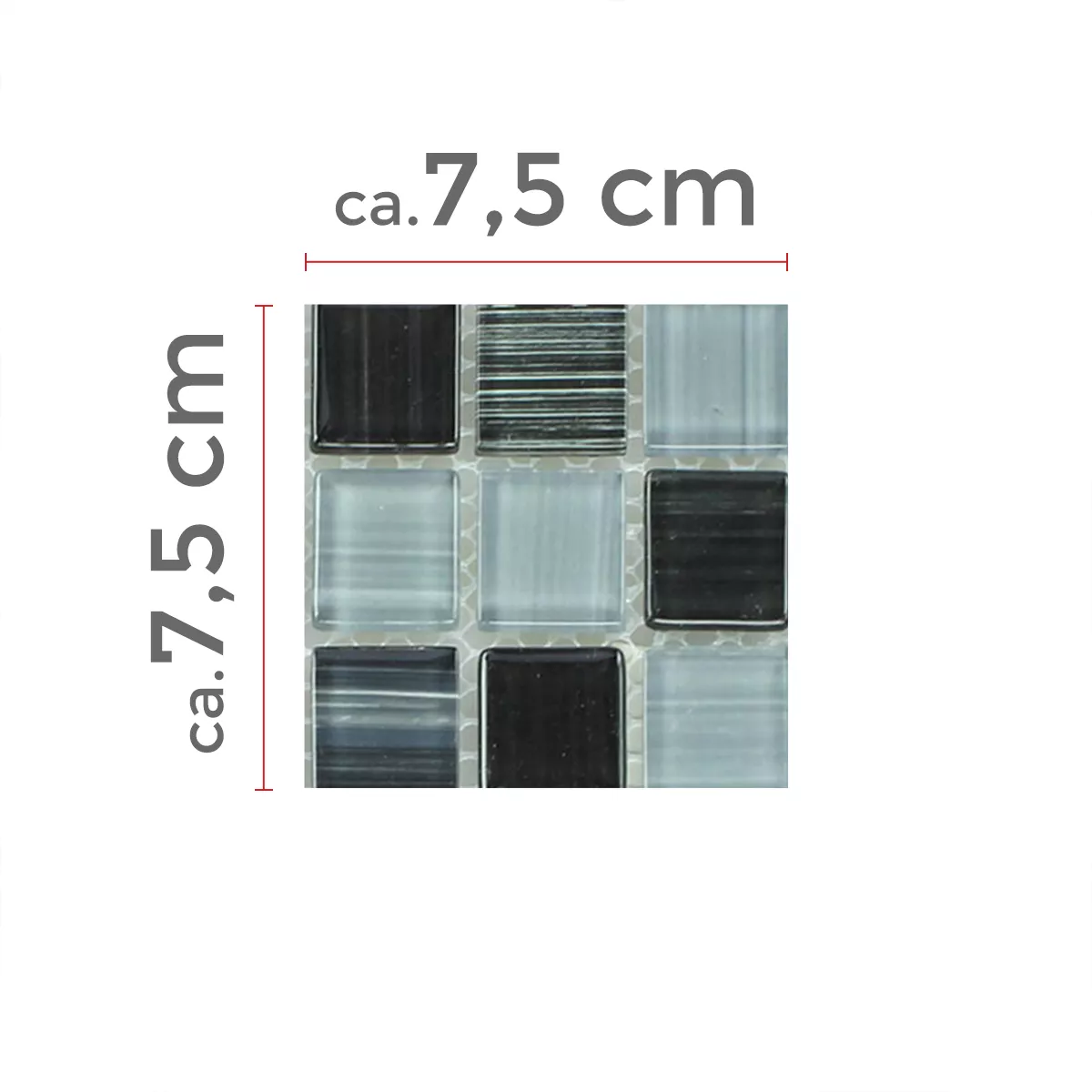 Prov Glasmosaik Plattor Lafayette Svart Grå Randig