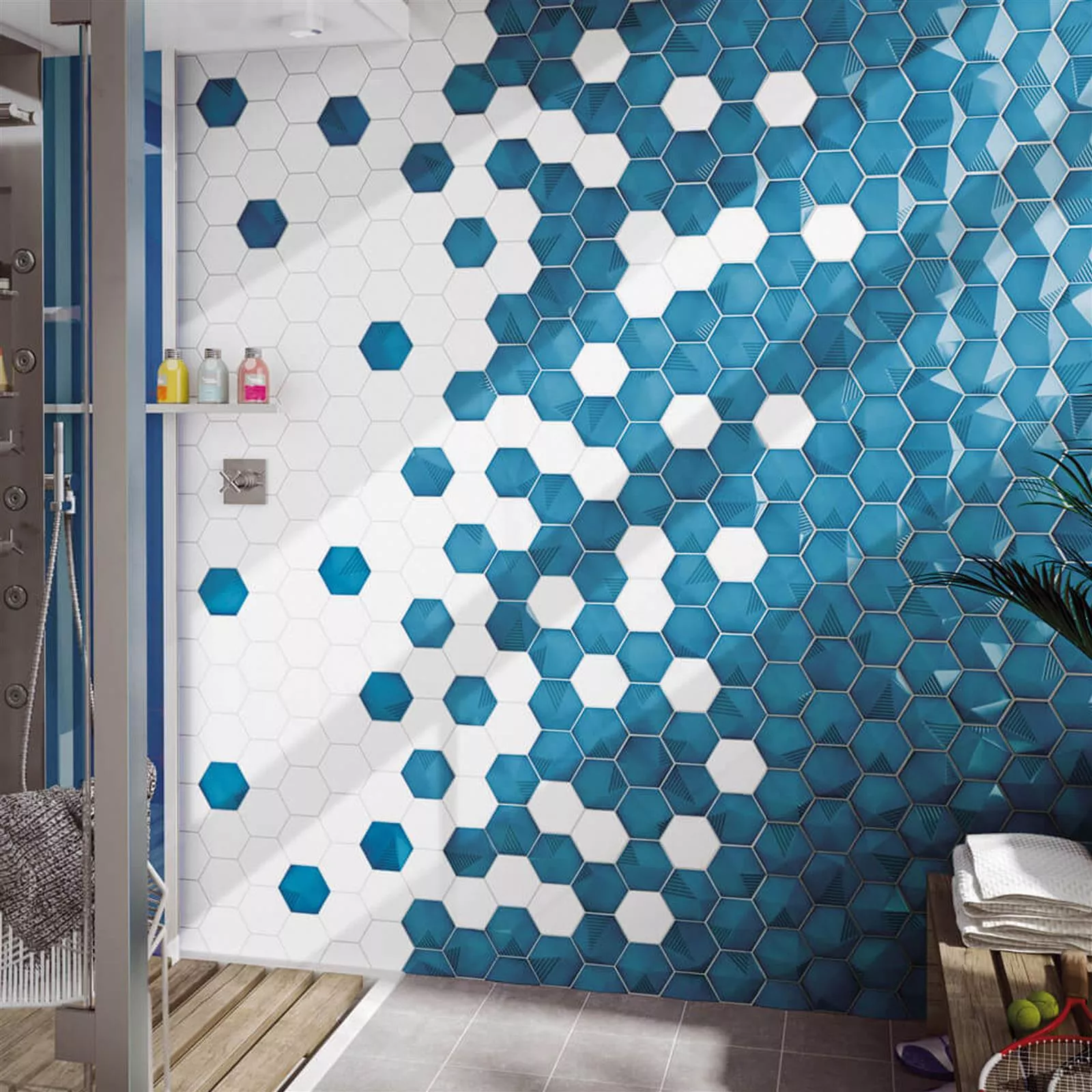 Prov Kakel Rockford 3D Hexagon 12,4x10,7cm Blå