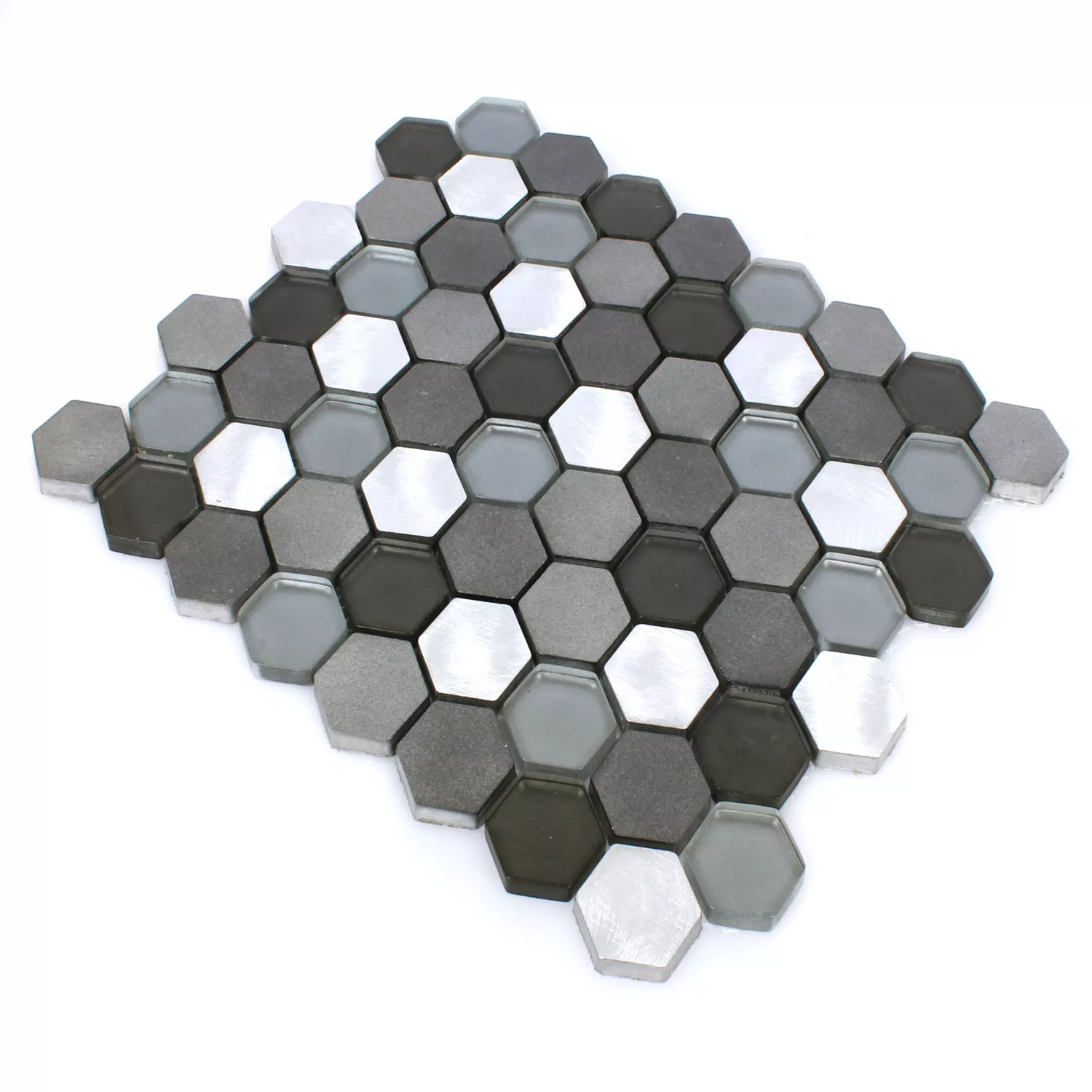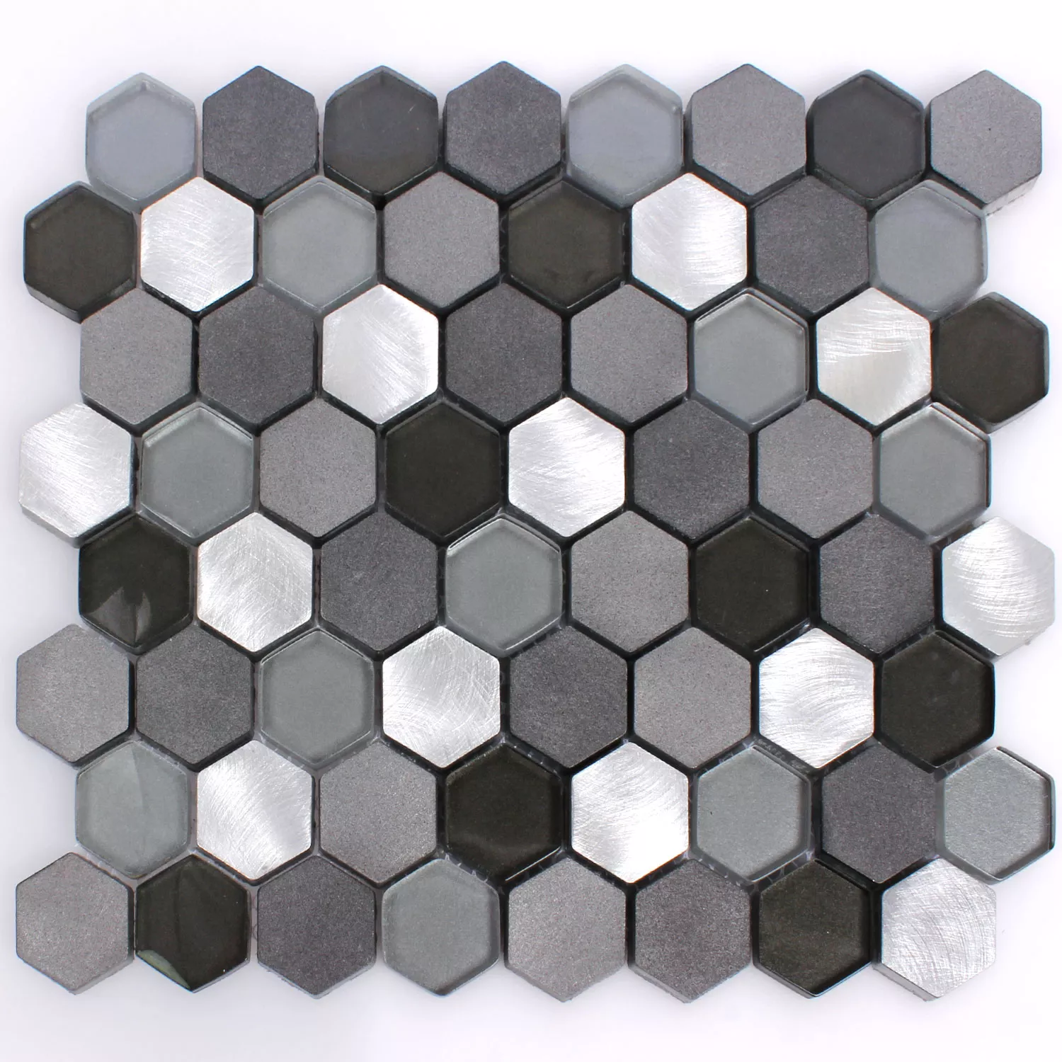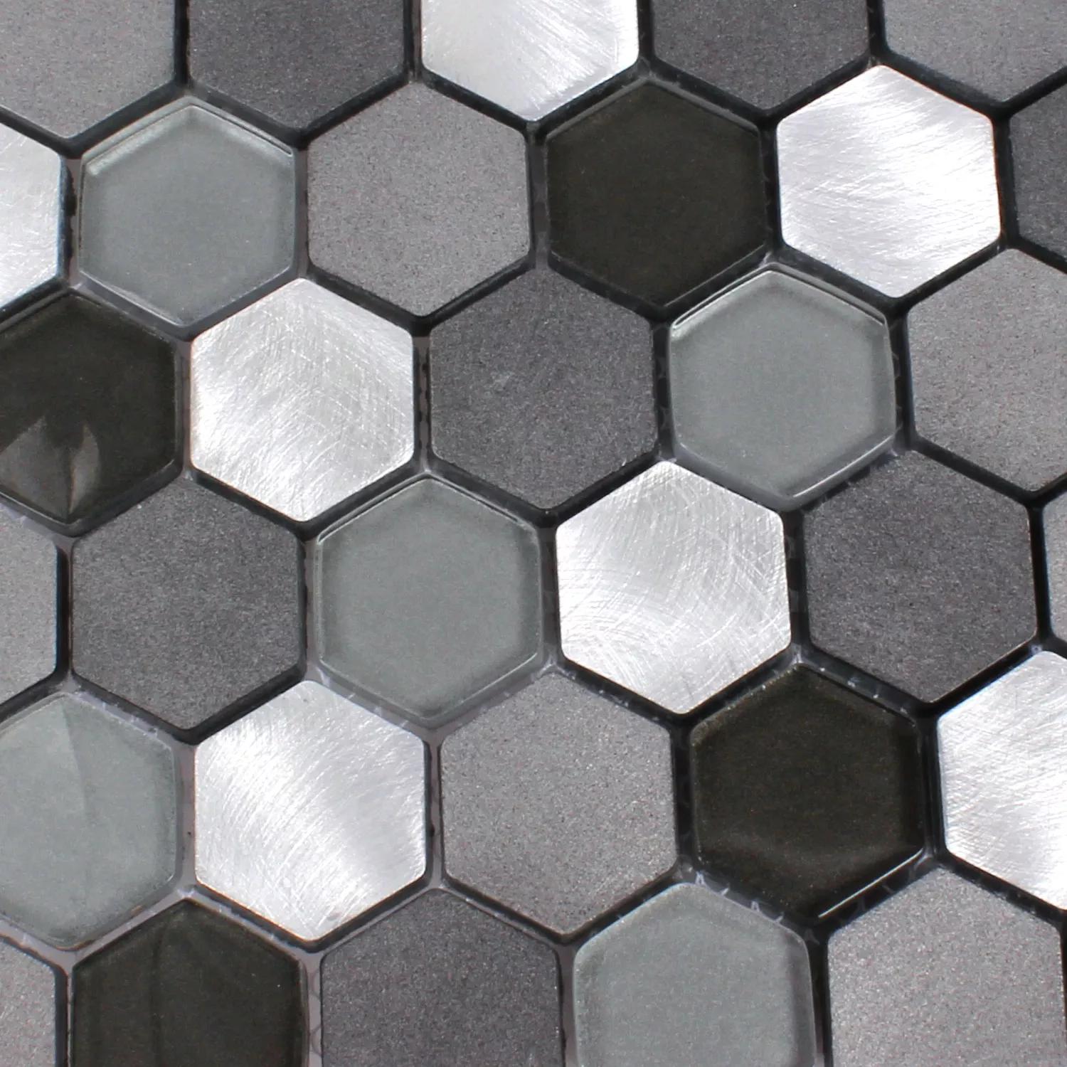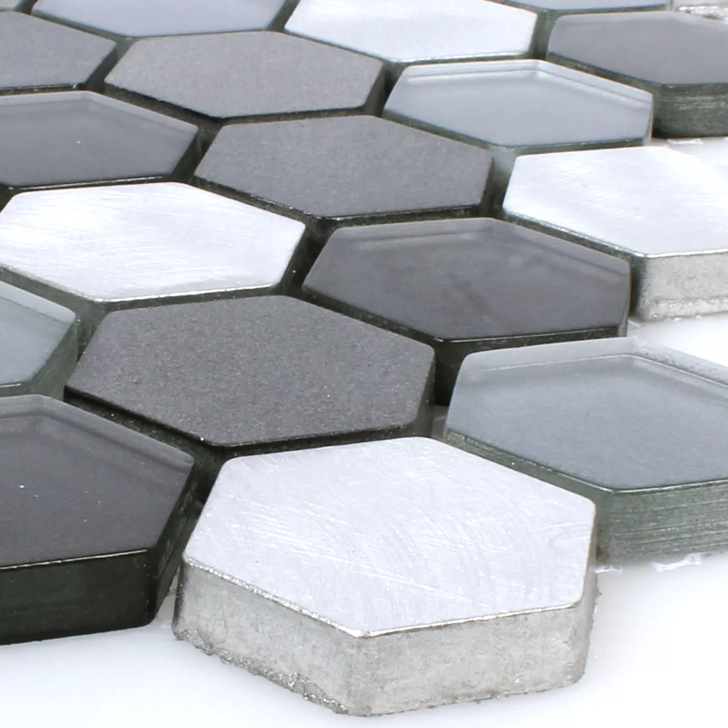Prov Mosaik Glas Aluminium Angela Hexagon Svart Silver