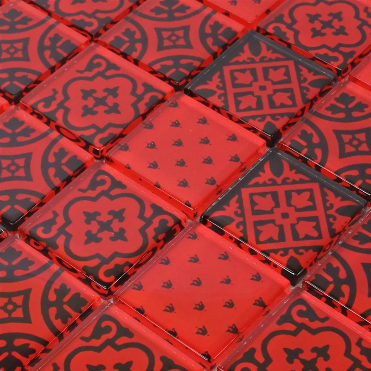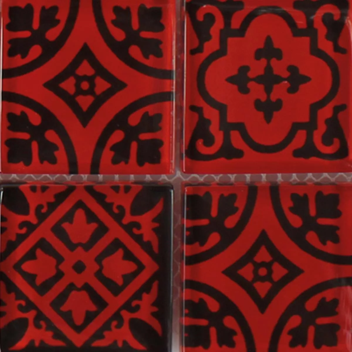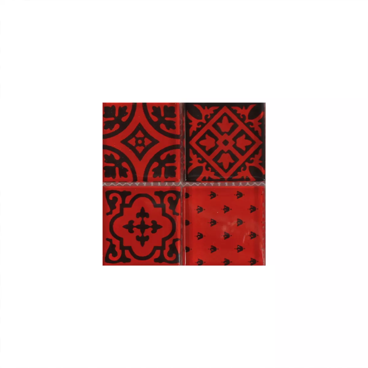 Prov Mosaik Glas Barock Ornament Röd