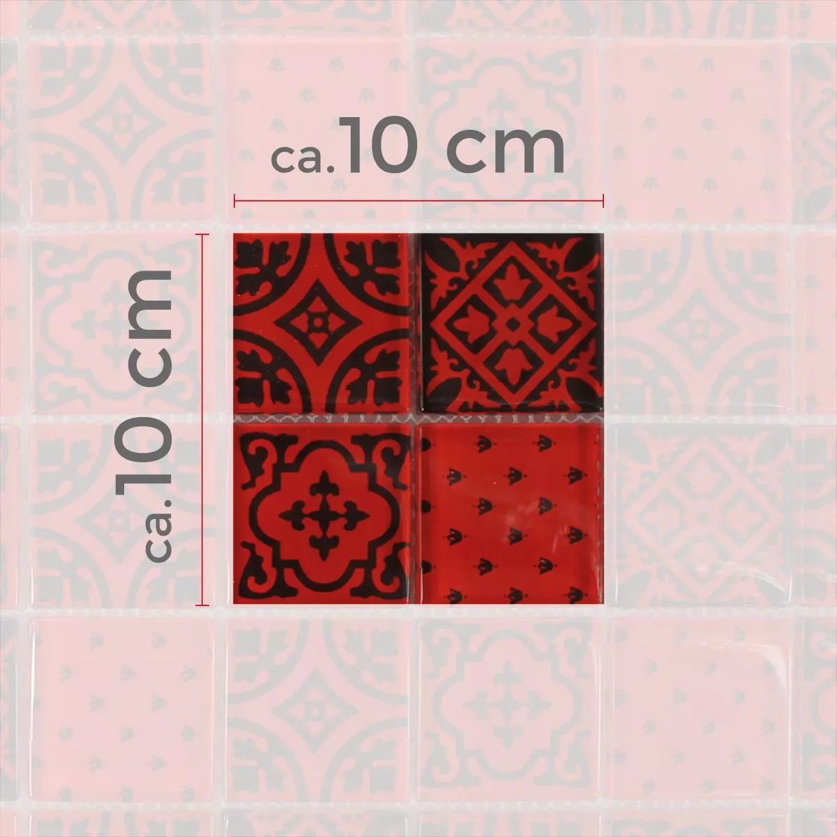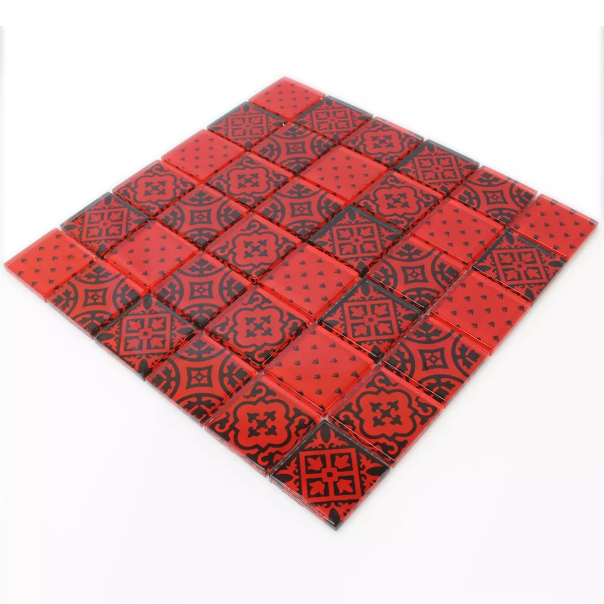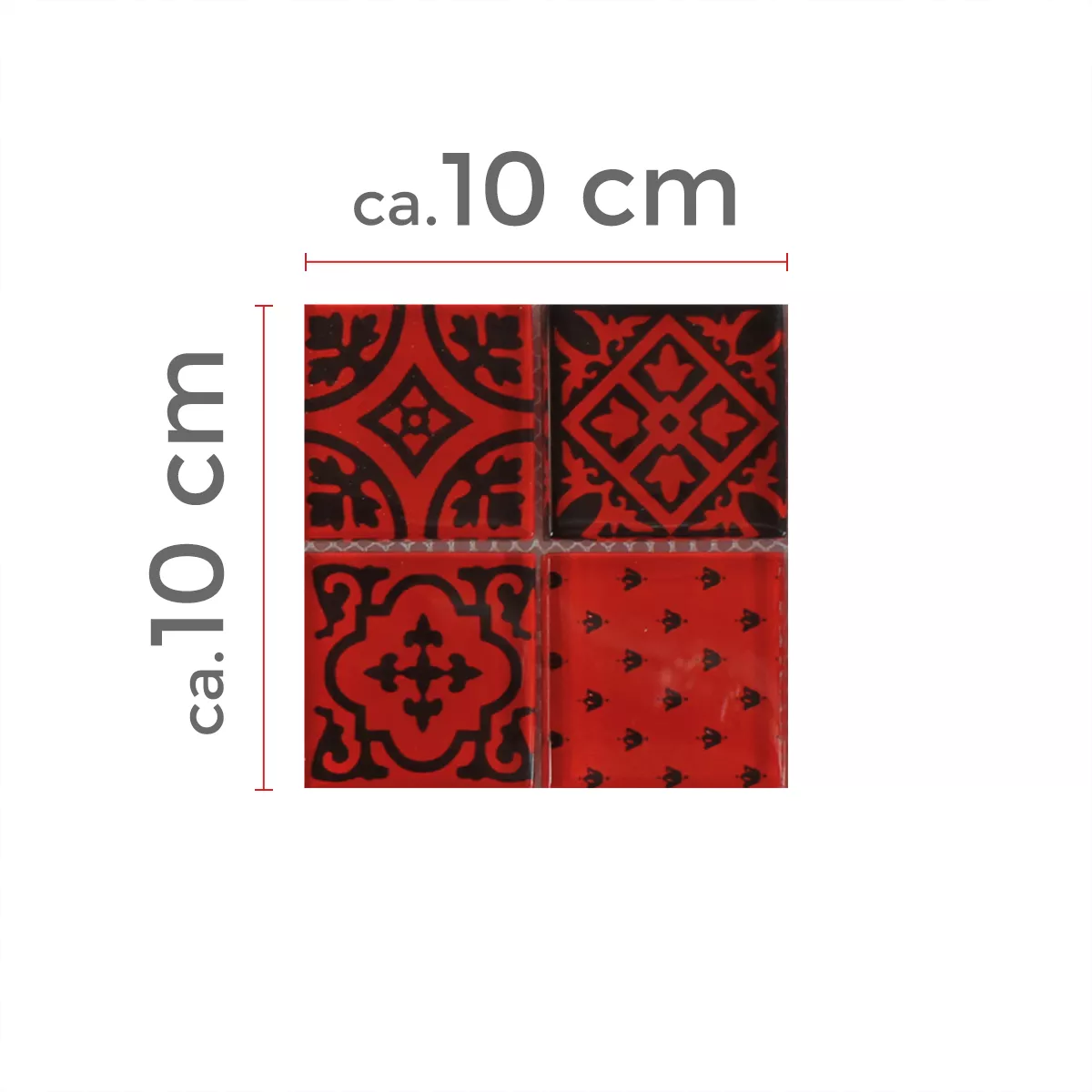 Prov Mosaik Glas Barock Ornament Röd