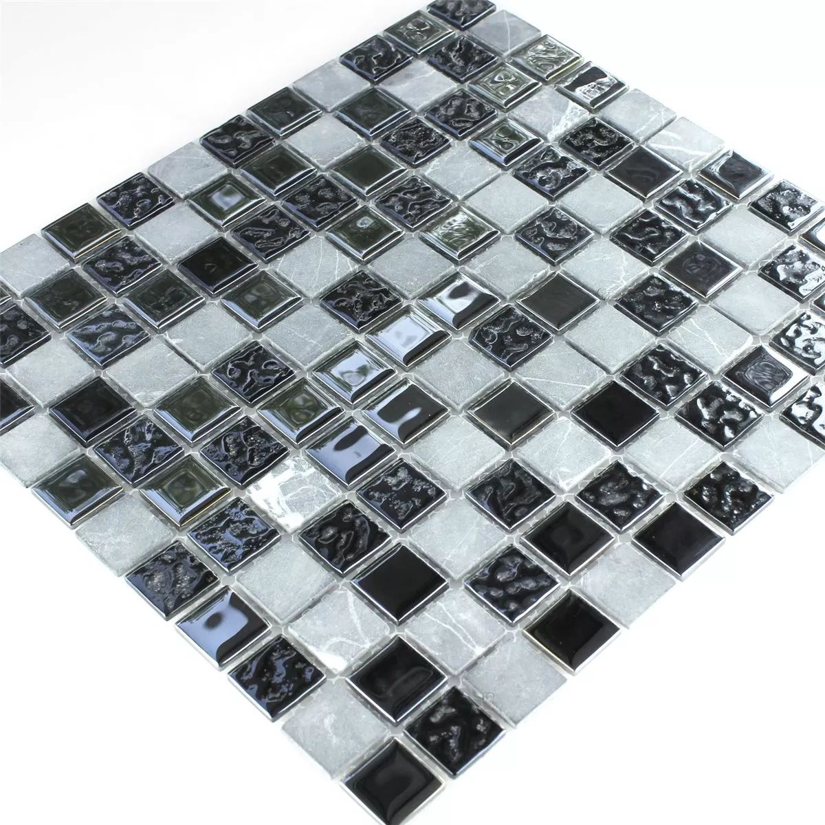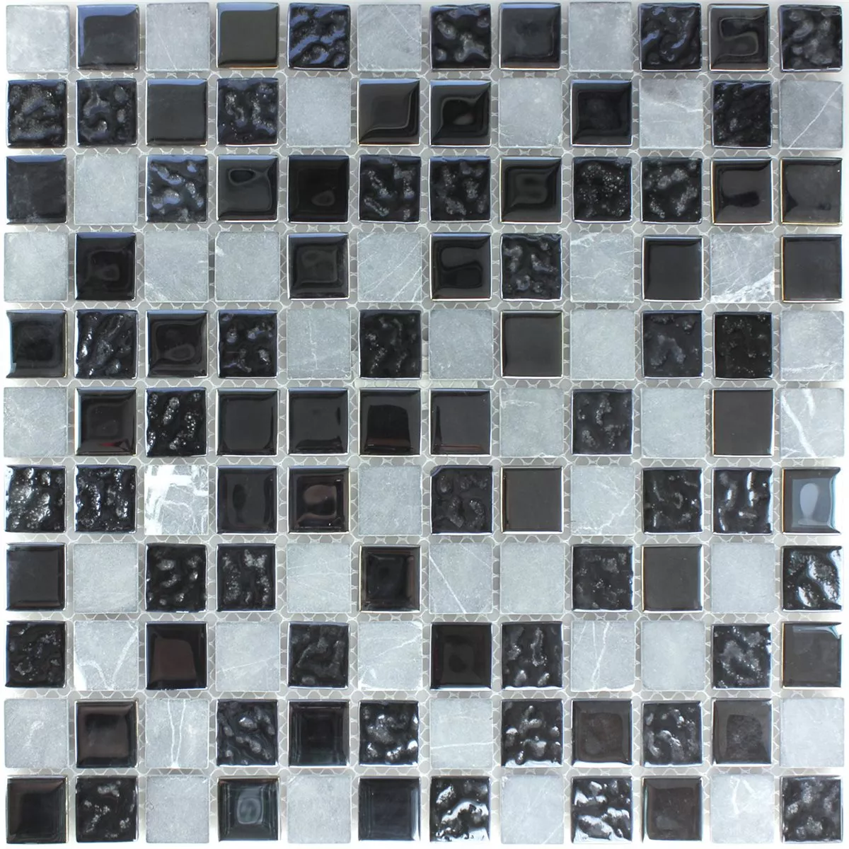 Prov Glas Marmor Natursten Mosaik Epsilon Svart Grå