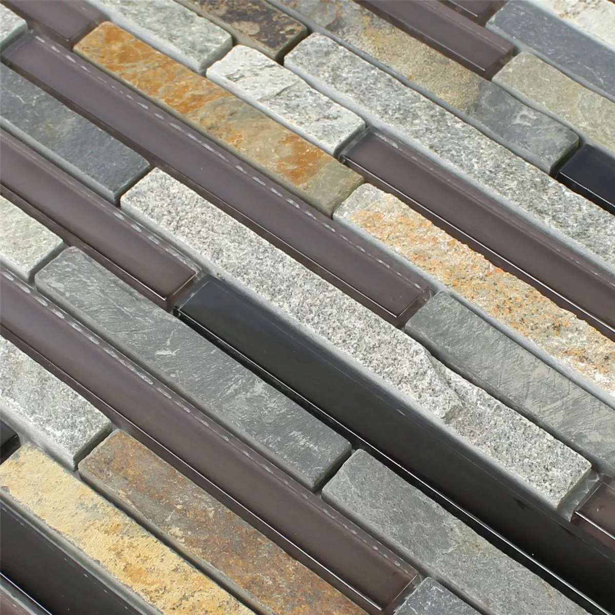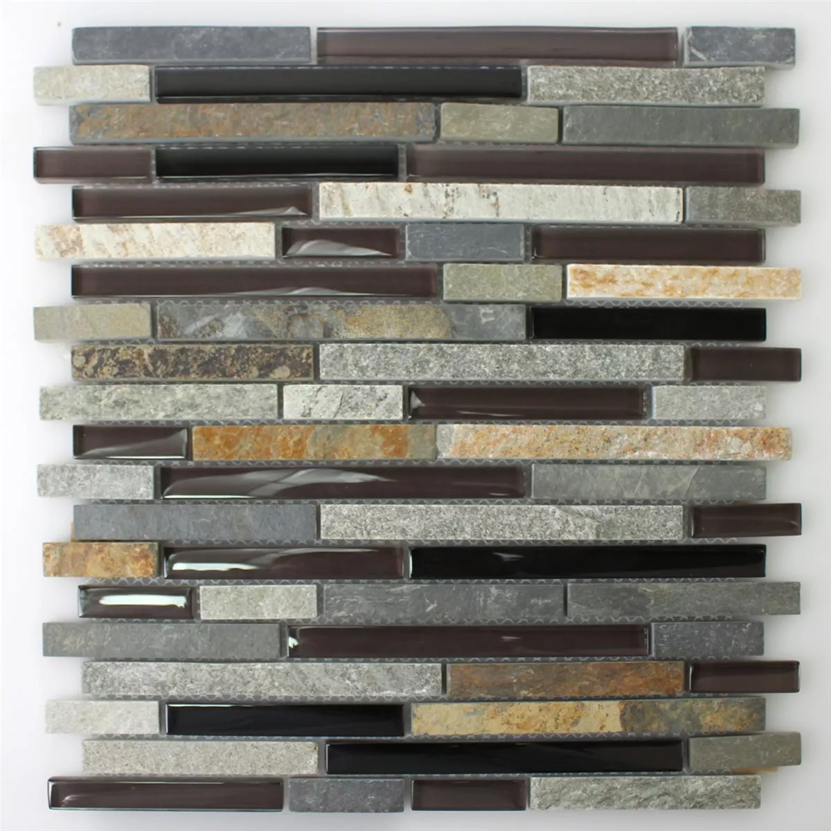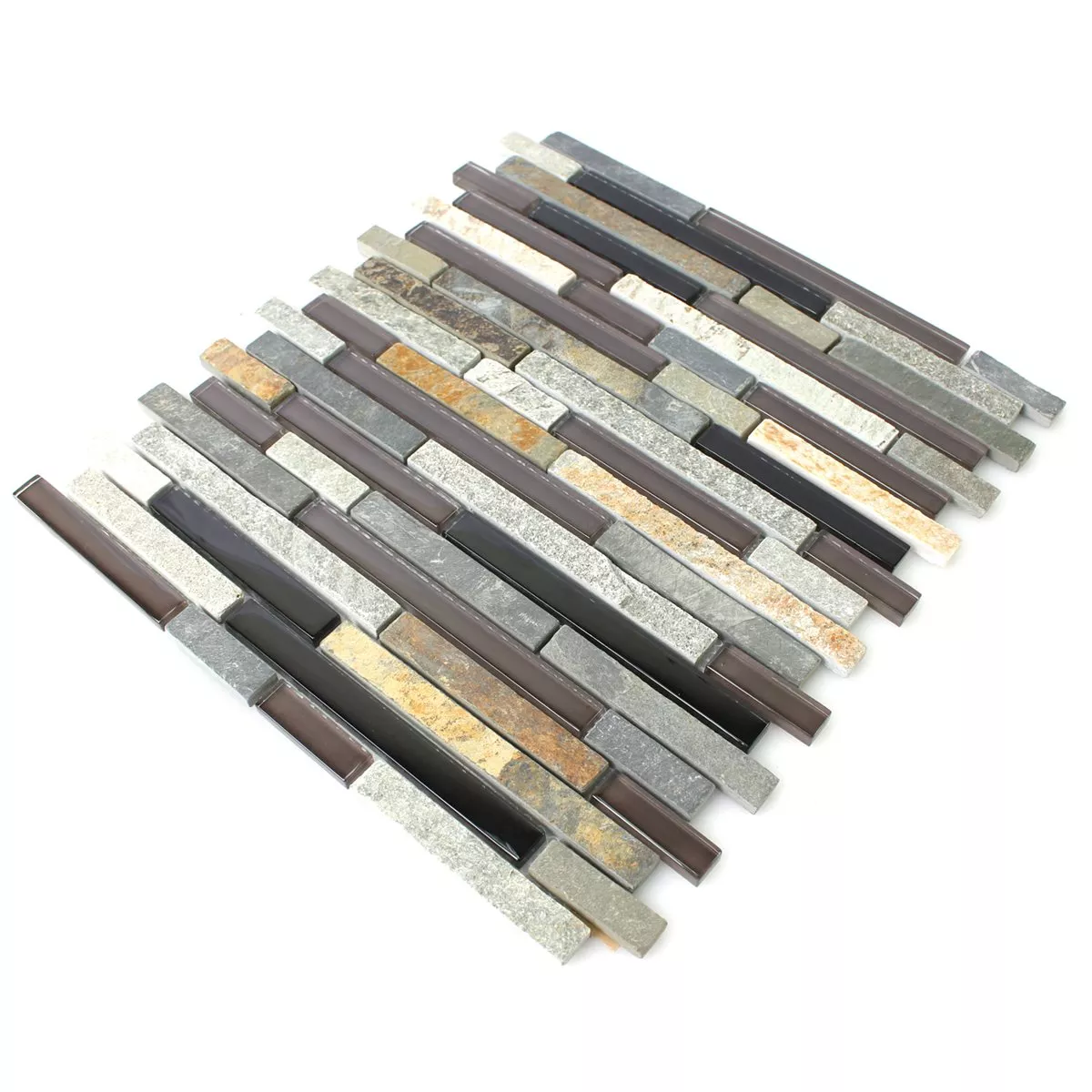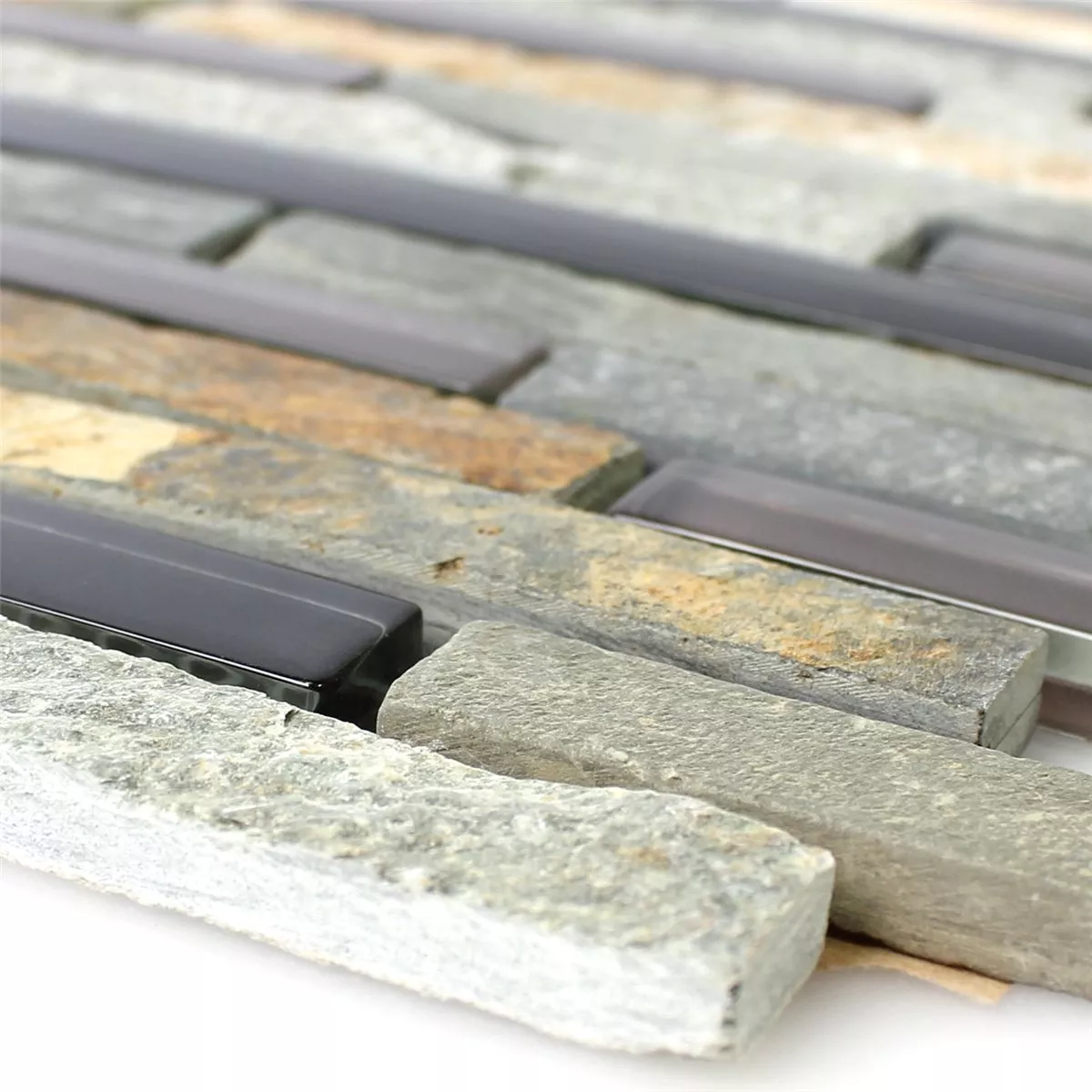 Prov Mosaik Glas Natursten Grå Beige Brun Mix