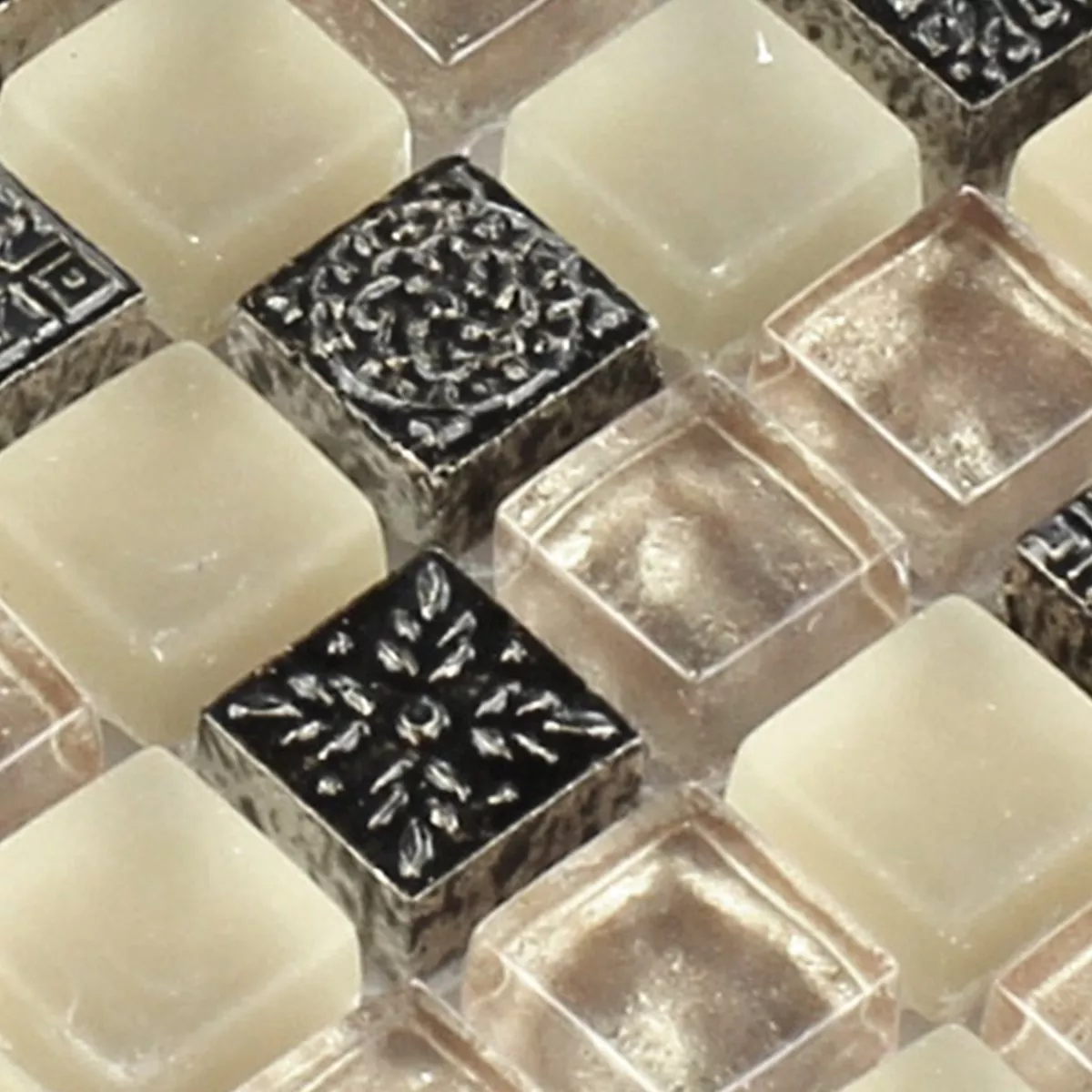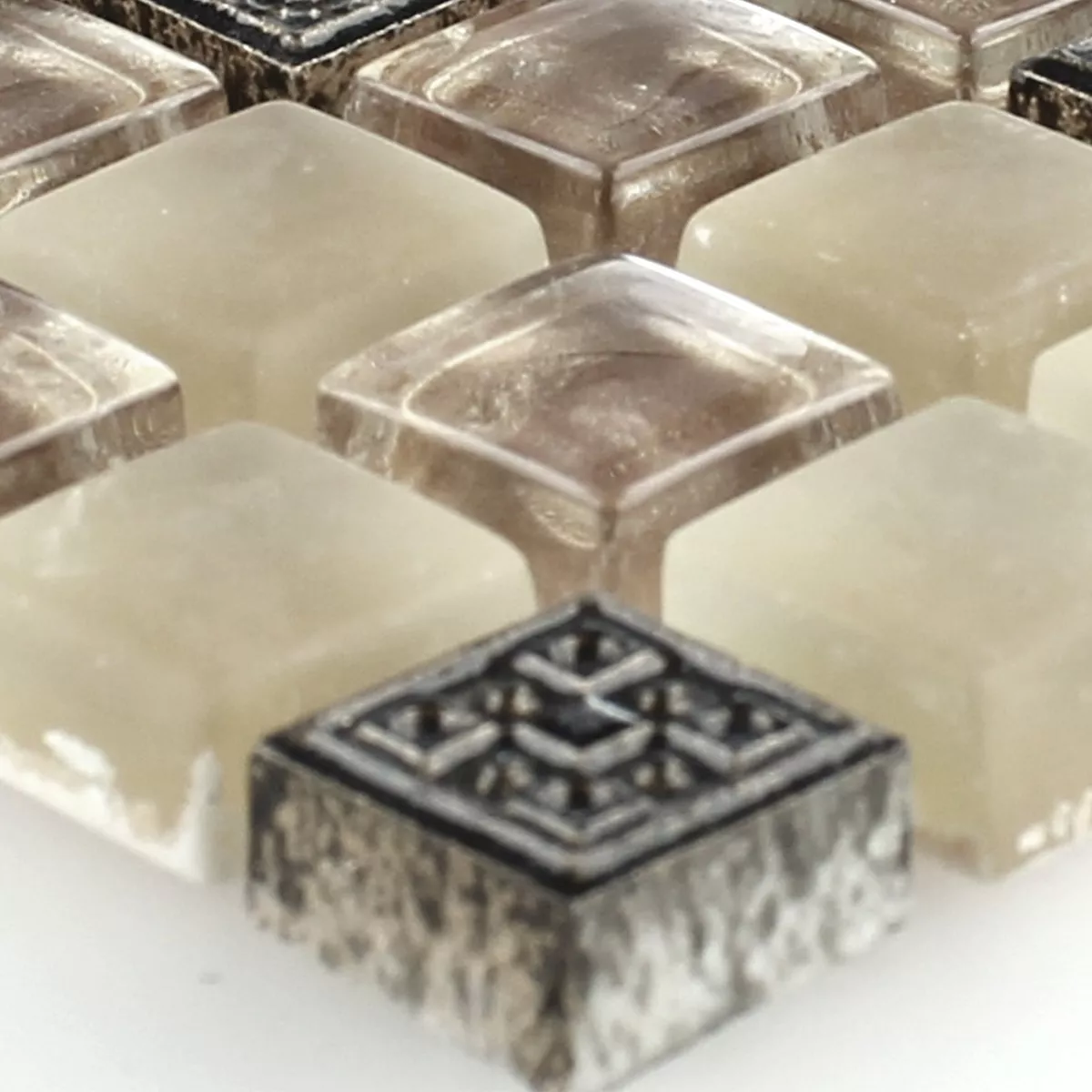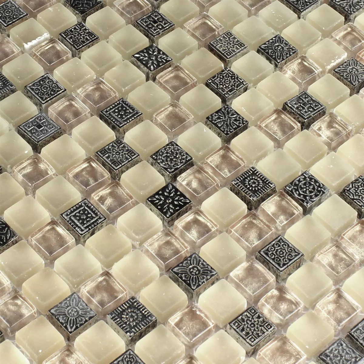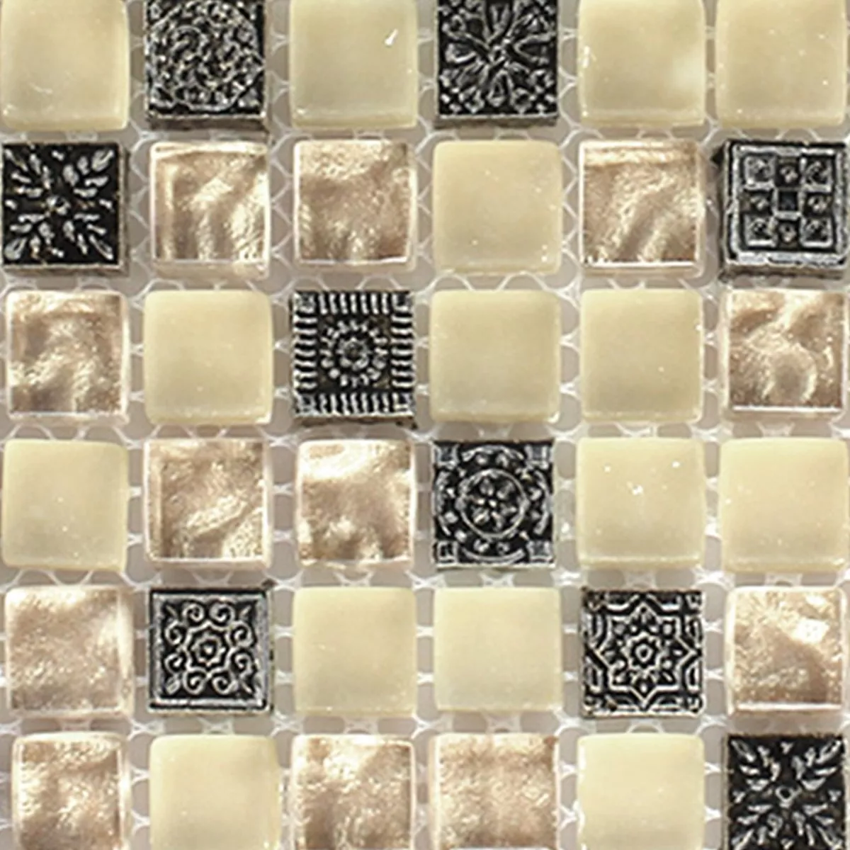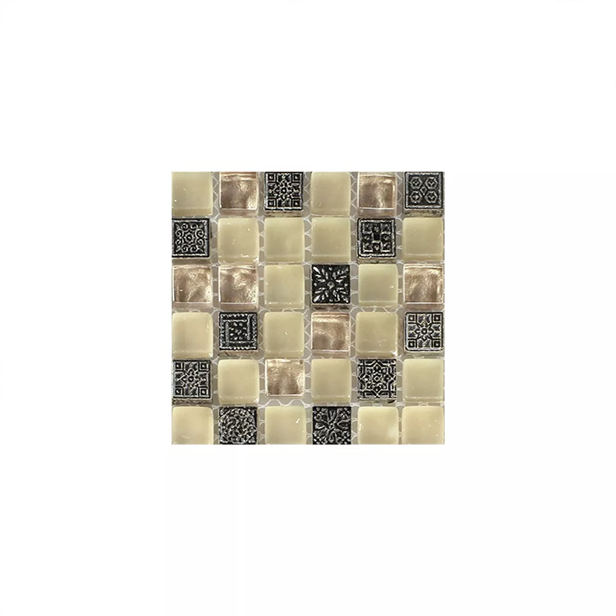 Prov Mosaik Glas Natursten Ornament Beige Mix
