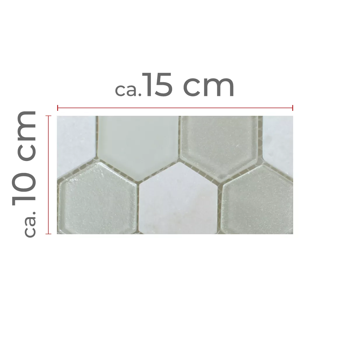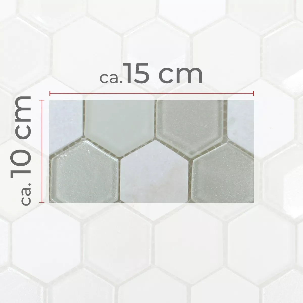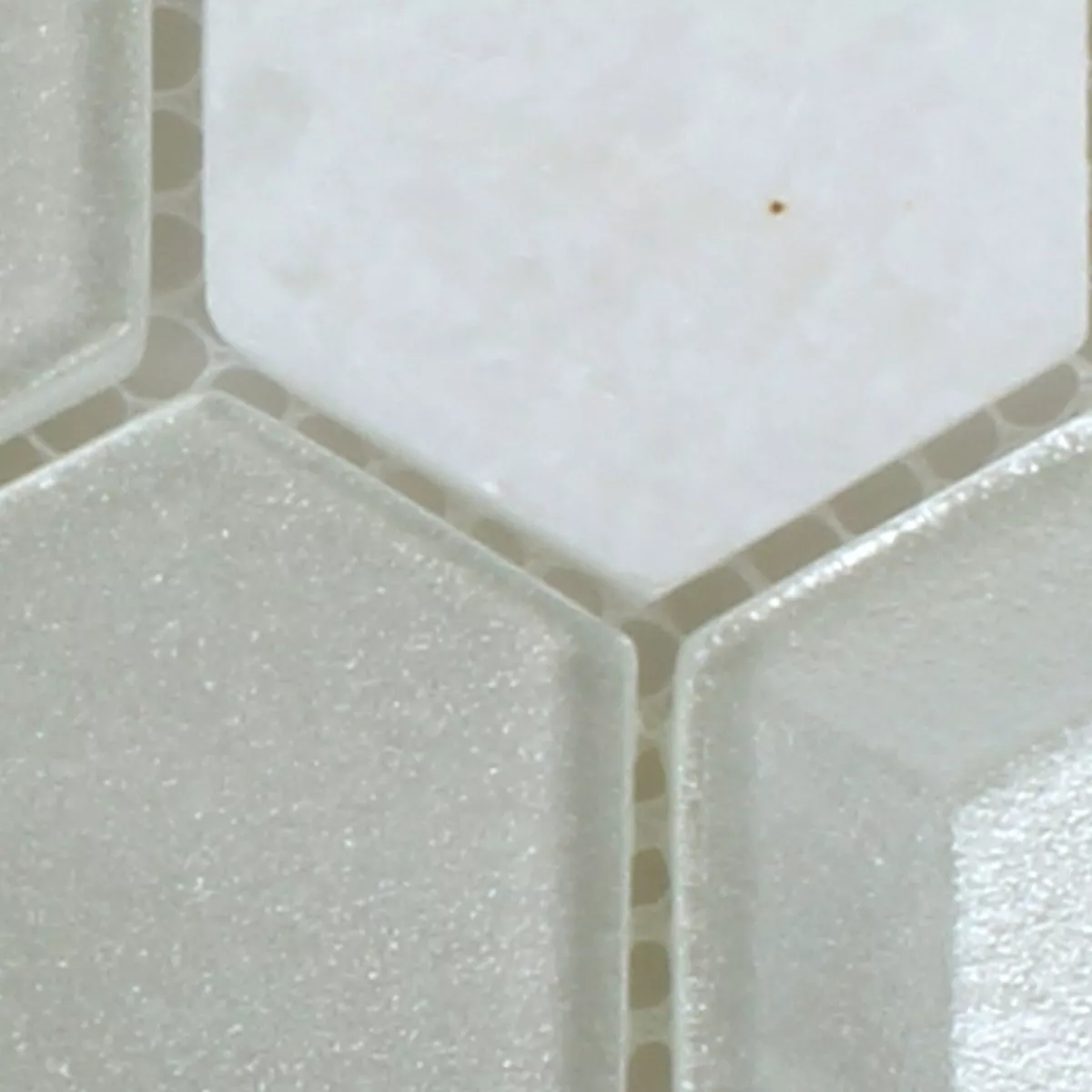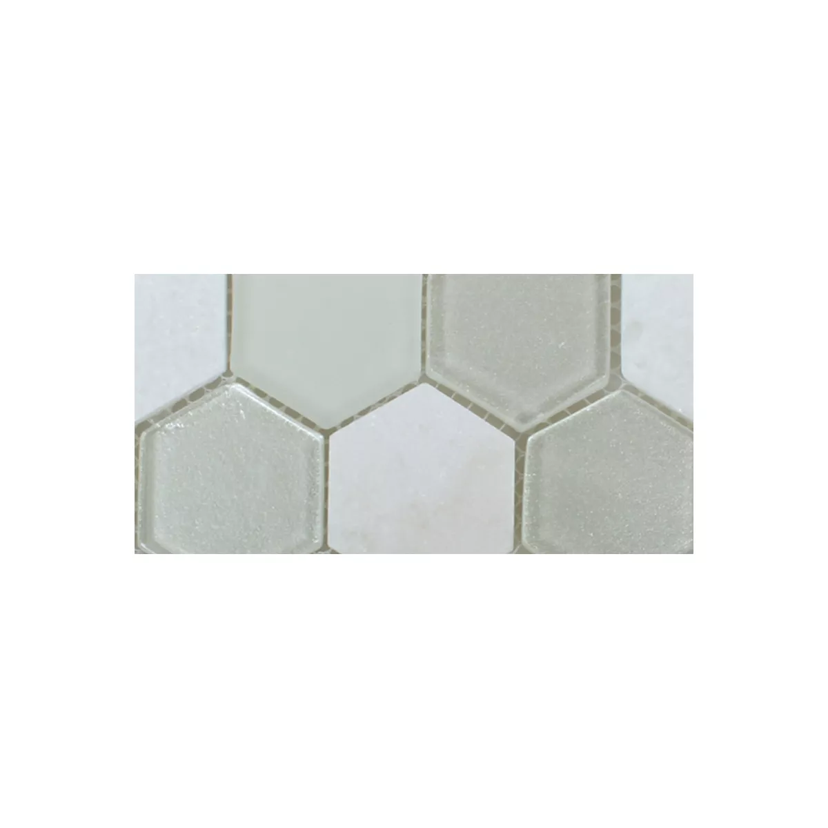 Prov Mosaik Hexagon Glas Natursten Vit 3D