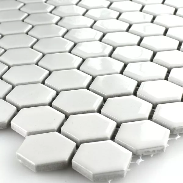 Prov Mosaik Keramik Waben Vit Glänsande H23