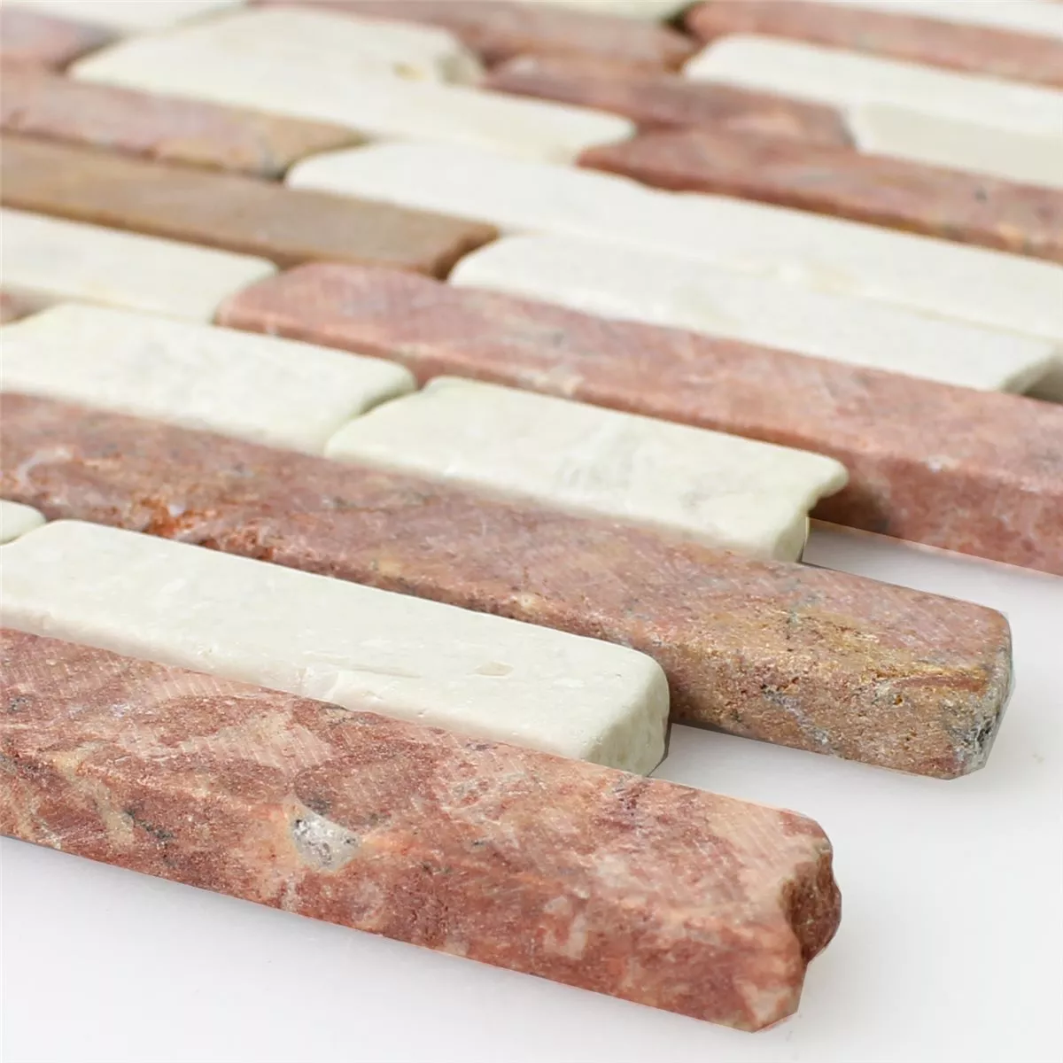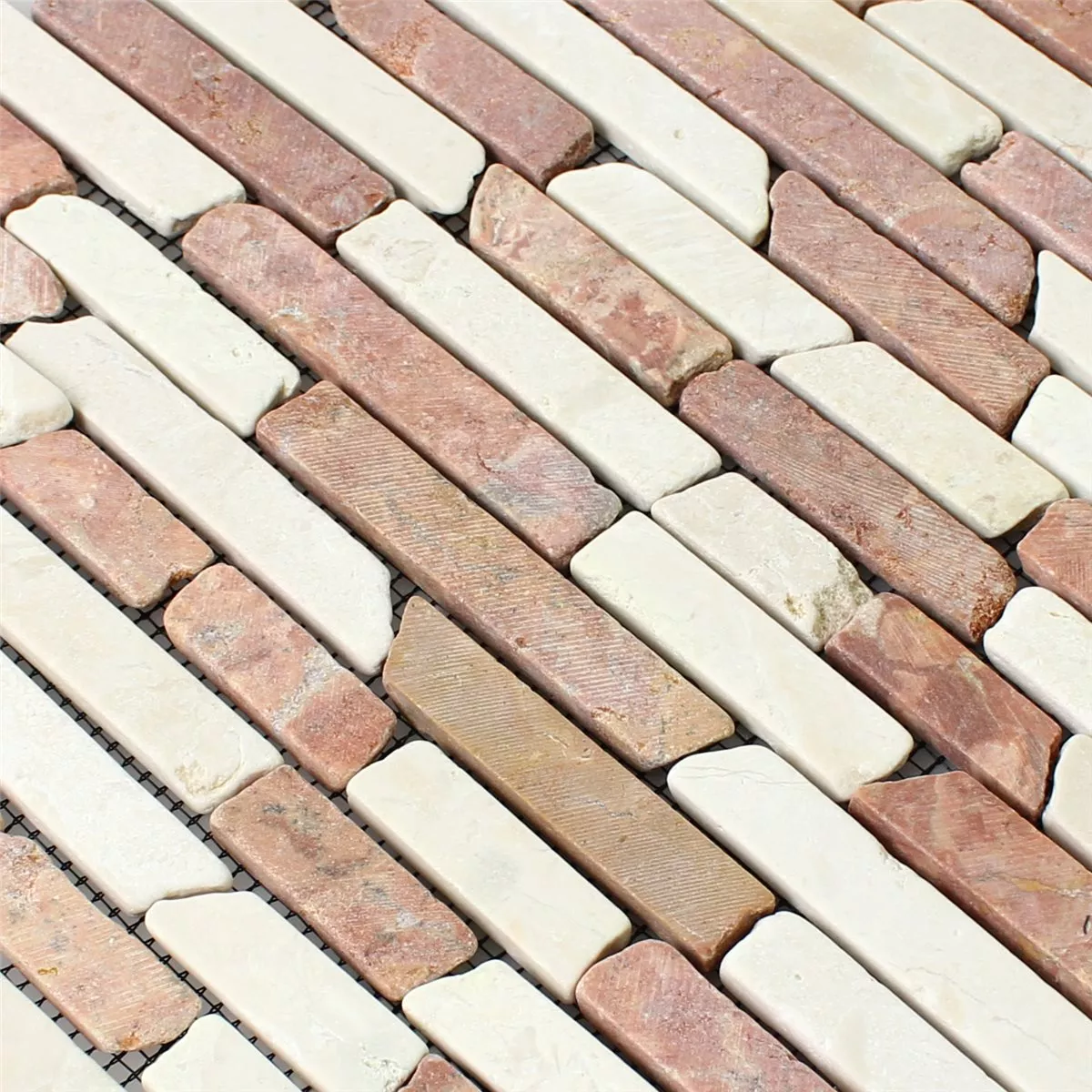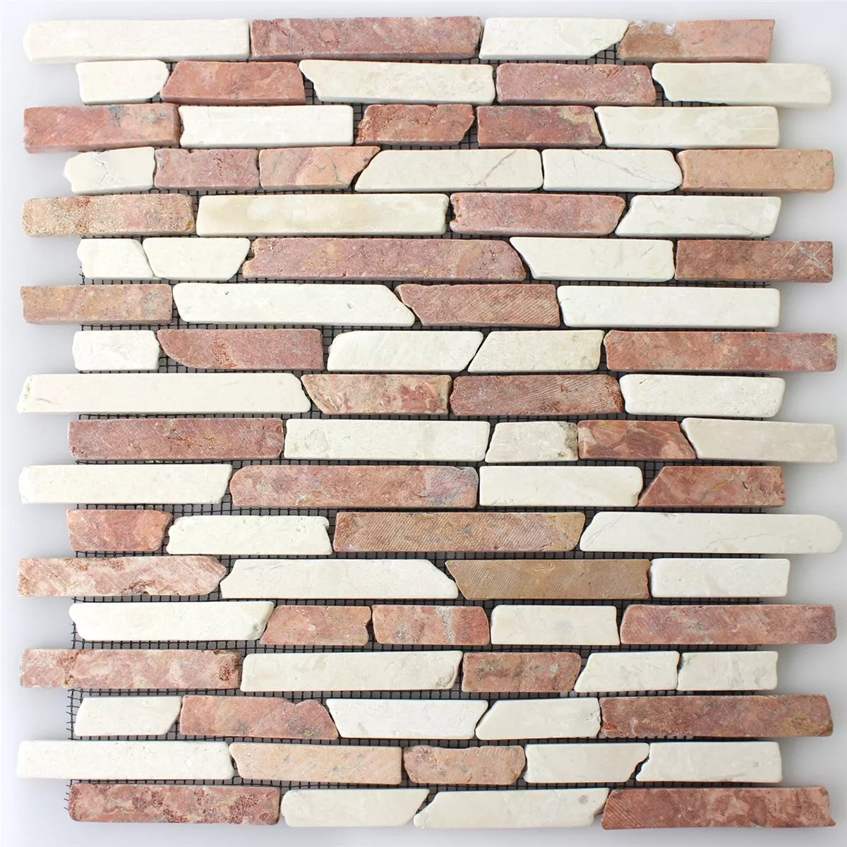 Bitte beachten Sie, dass es sich bei diesem Artikel um ein Handmuster der Bali Rosso Cream Brick Naturstein Mosaikfliese handelt, mit einer Mustergröße von ca. 10x10 cm.
