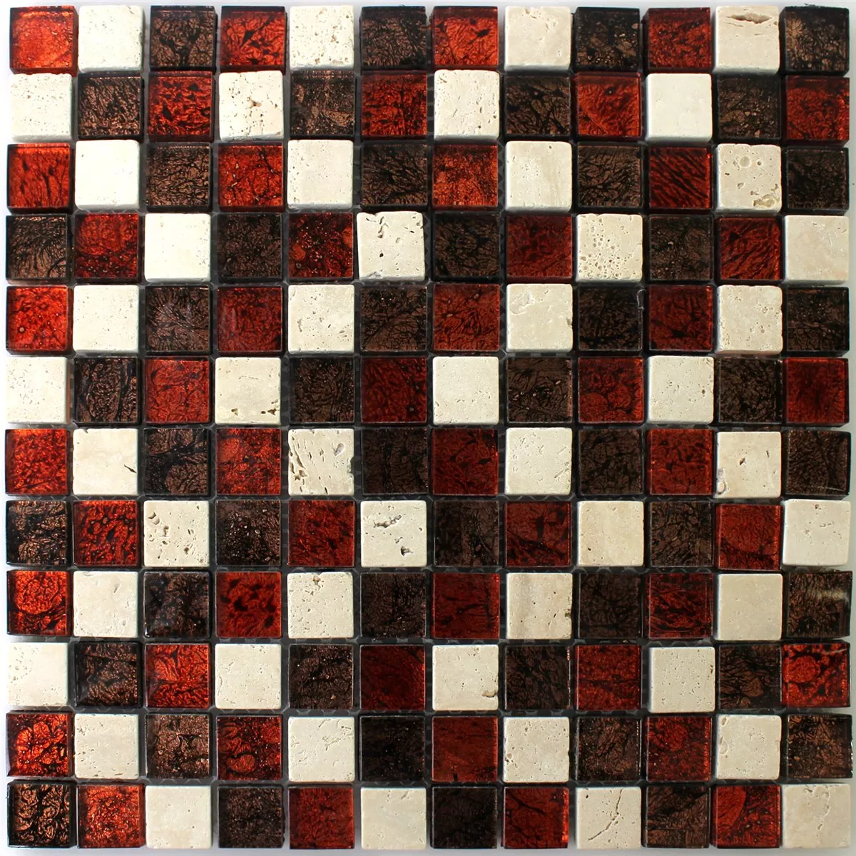 Prov Mosaik Natursten Glas Röd Brun Beige