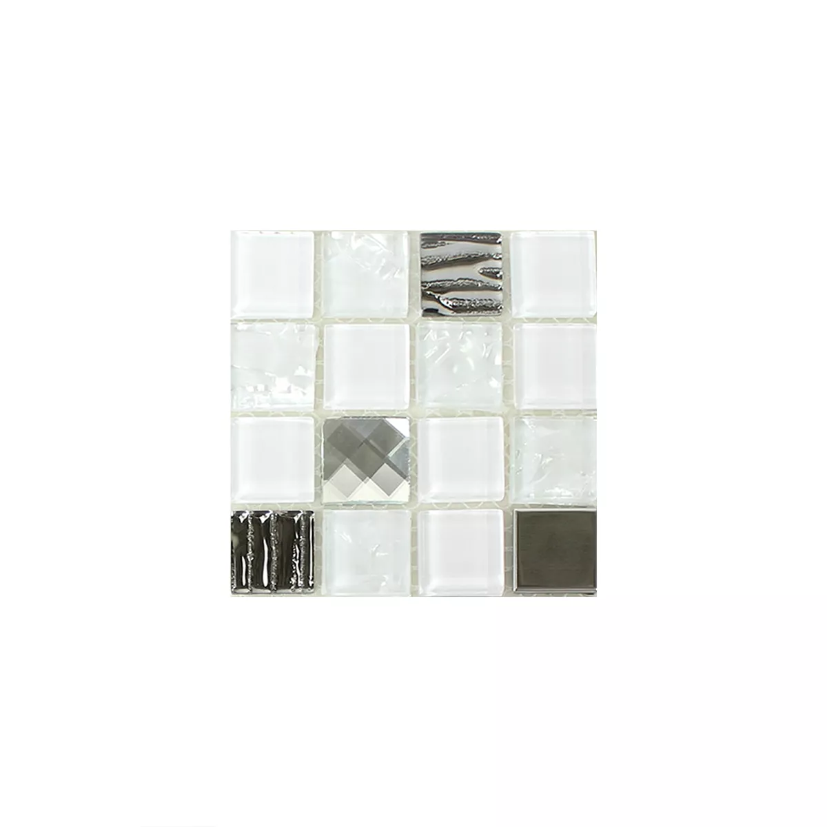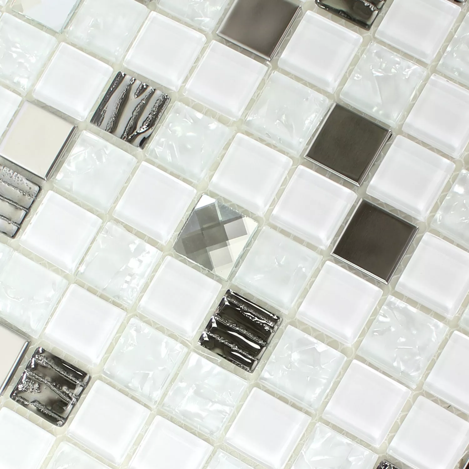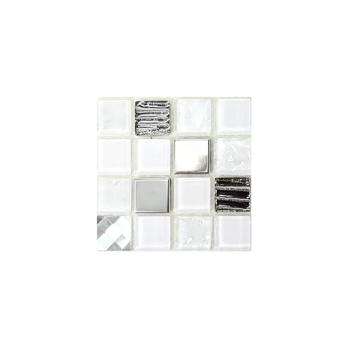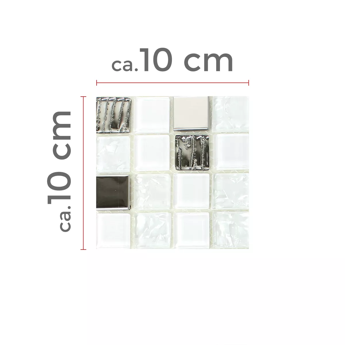 Prov Självhäftande Glas Rostfritt Stål Mosaik Vit Silver