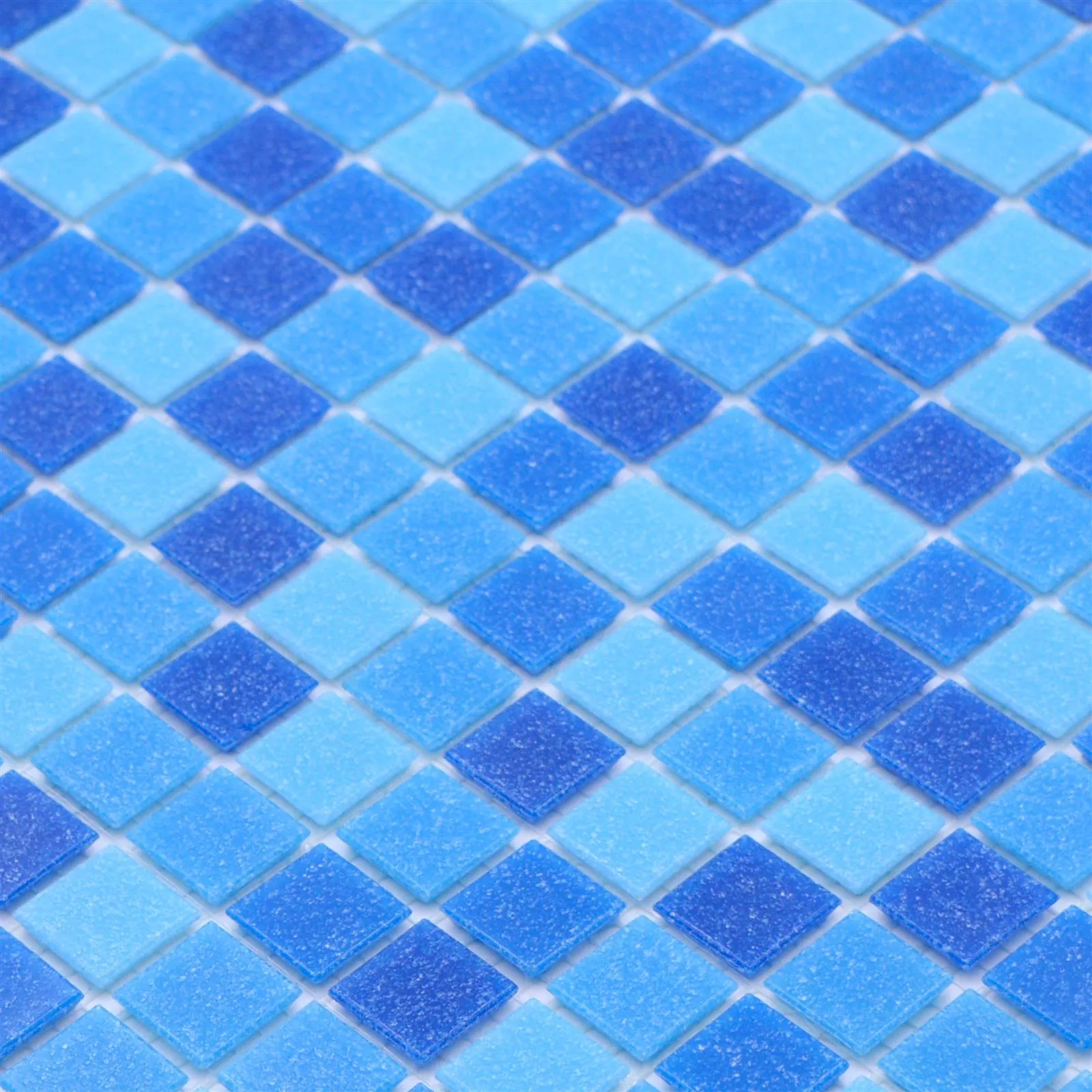 Mosaikplattor för inomhus- eller utomhuspoolen. Papperslimning gör skärningen lättare för hantverkaren. De kan snabbt rengöras med hjälp av glasytan.