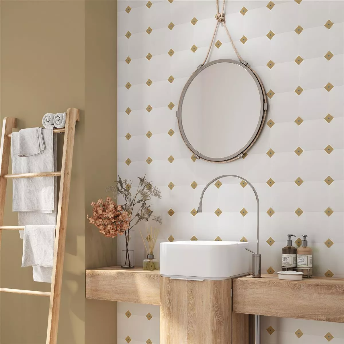 Die Feinsteinzeug Fliesen Genexia Decor Beige Einleger sind die perfekte Wahl, um Ihrem Zuhause charmante Retro-Akzente zu verleihen. Mit ihrer quadratischen Form und der einzigartigen Optik sind sie nicht nur ästhetisch ansprechend, sondern auch äußerst funktional.