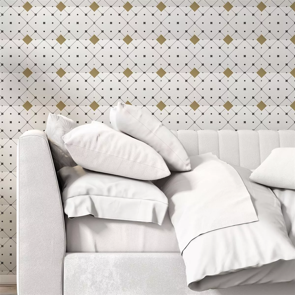 Ett paket innehåller generösa 1m² kakel i en snygg svartvit dekor. Med ett halkskydd på R11/C är de särskilt lämpliga för våtutrymmen som badrum, kök och duschar.