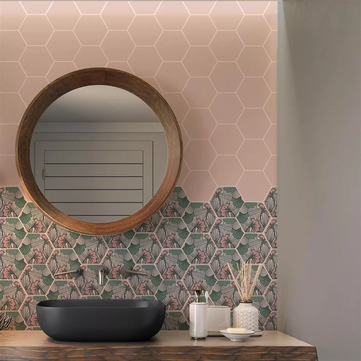 "Modena Hexagon Decor 1" porslinsplattor i stengods kombinerar stil och funktionalitet. Med en tjocklek på 10 mm är de robusta och idealiska för våtutrymmen, duschar, badrum, kök, vardagsrum och inomhusutrymmen. Den matta ytan ger plattorna ett tidlöst utseende samtidigt som halkskyddet R10 garanterar säkerheten.